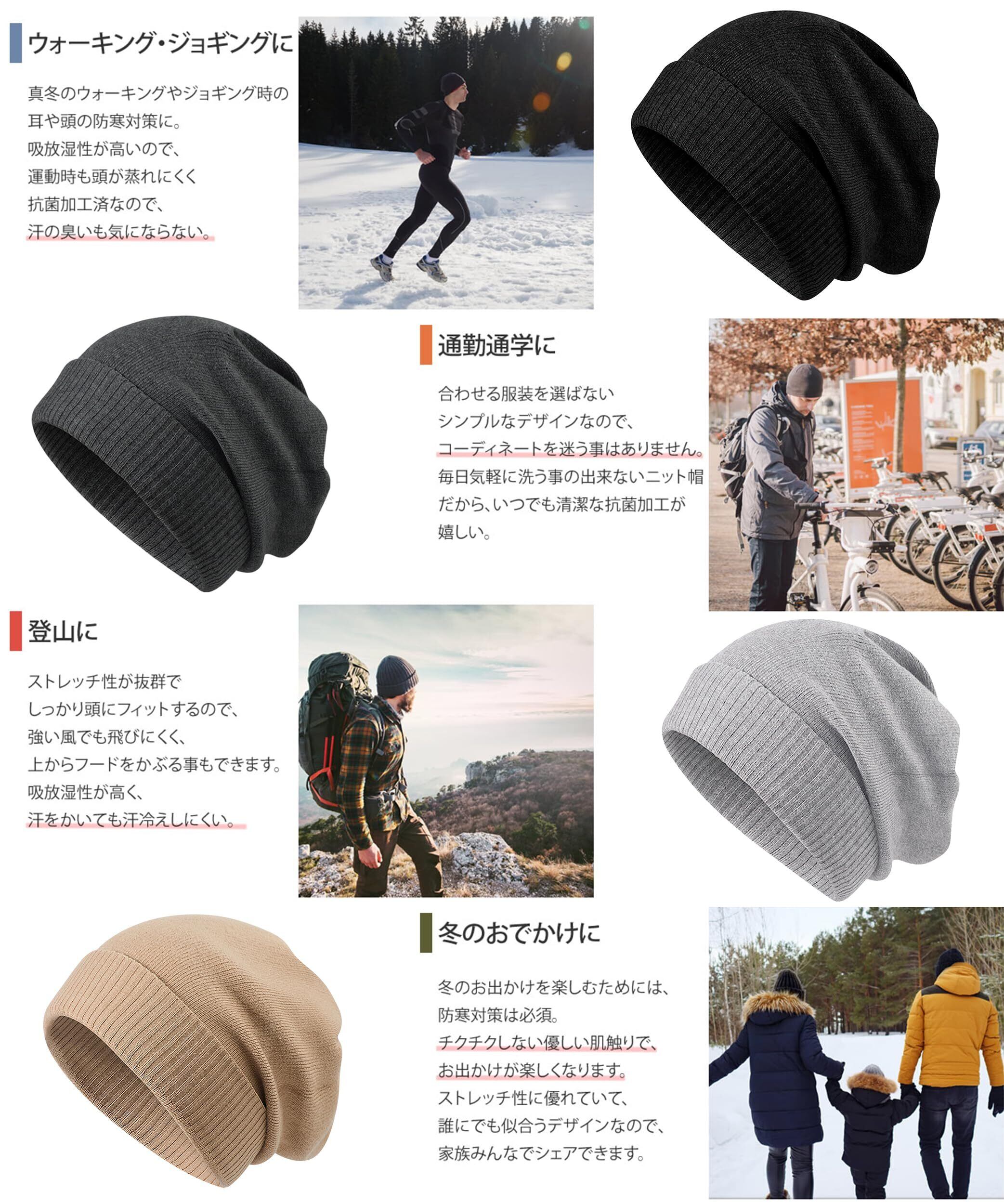 [Lavento] ニット帽 メンズ 秋 冬 【大きいサイズの究極選択!・保温強化・軽くて暖かいの素材】 ニット帽子 防寒帽子 帽子 ニットキャップ 肌に優しい 無地 通気 ふんわり アウトドア 旅行 男女兼用