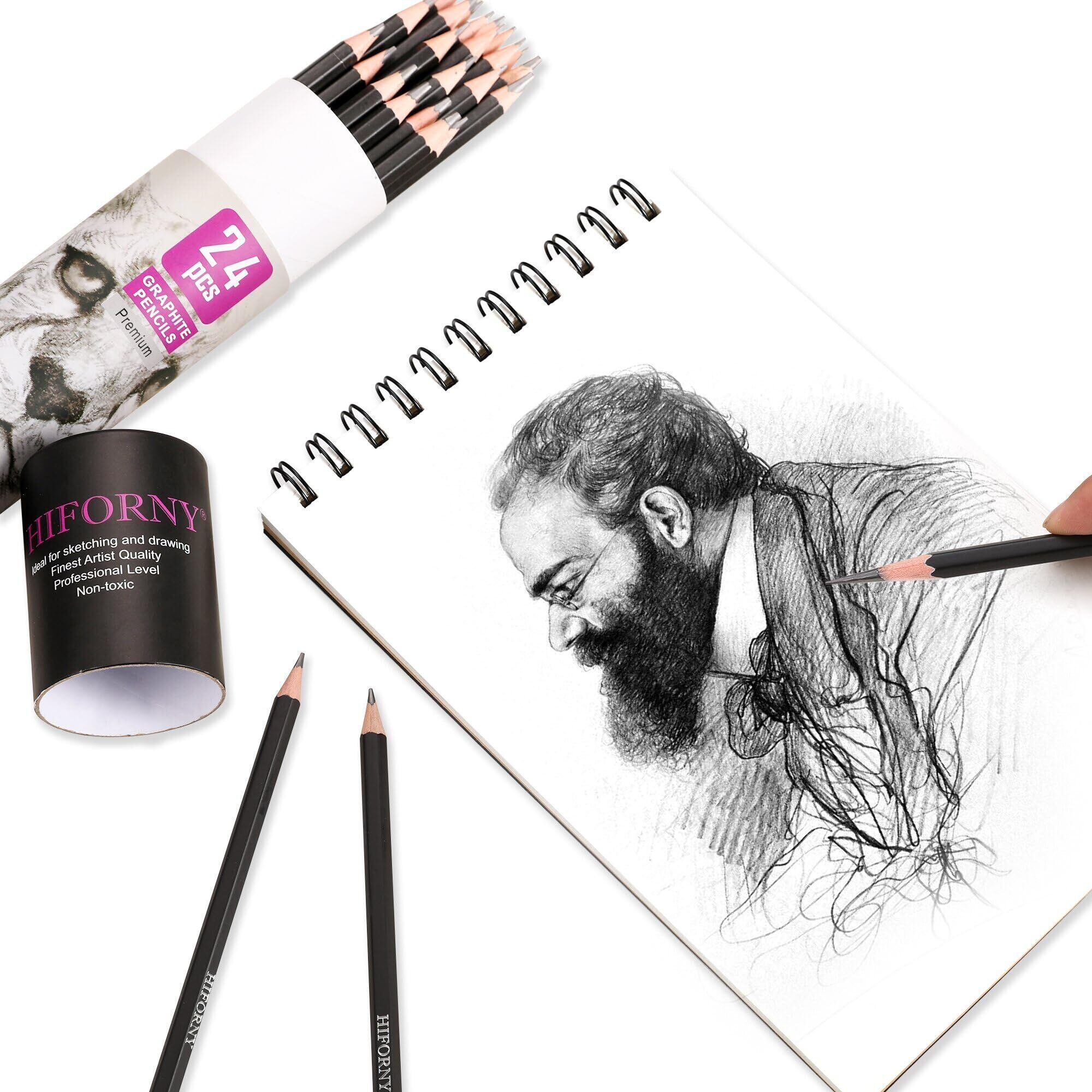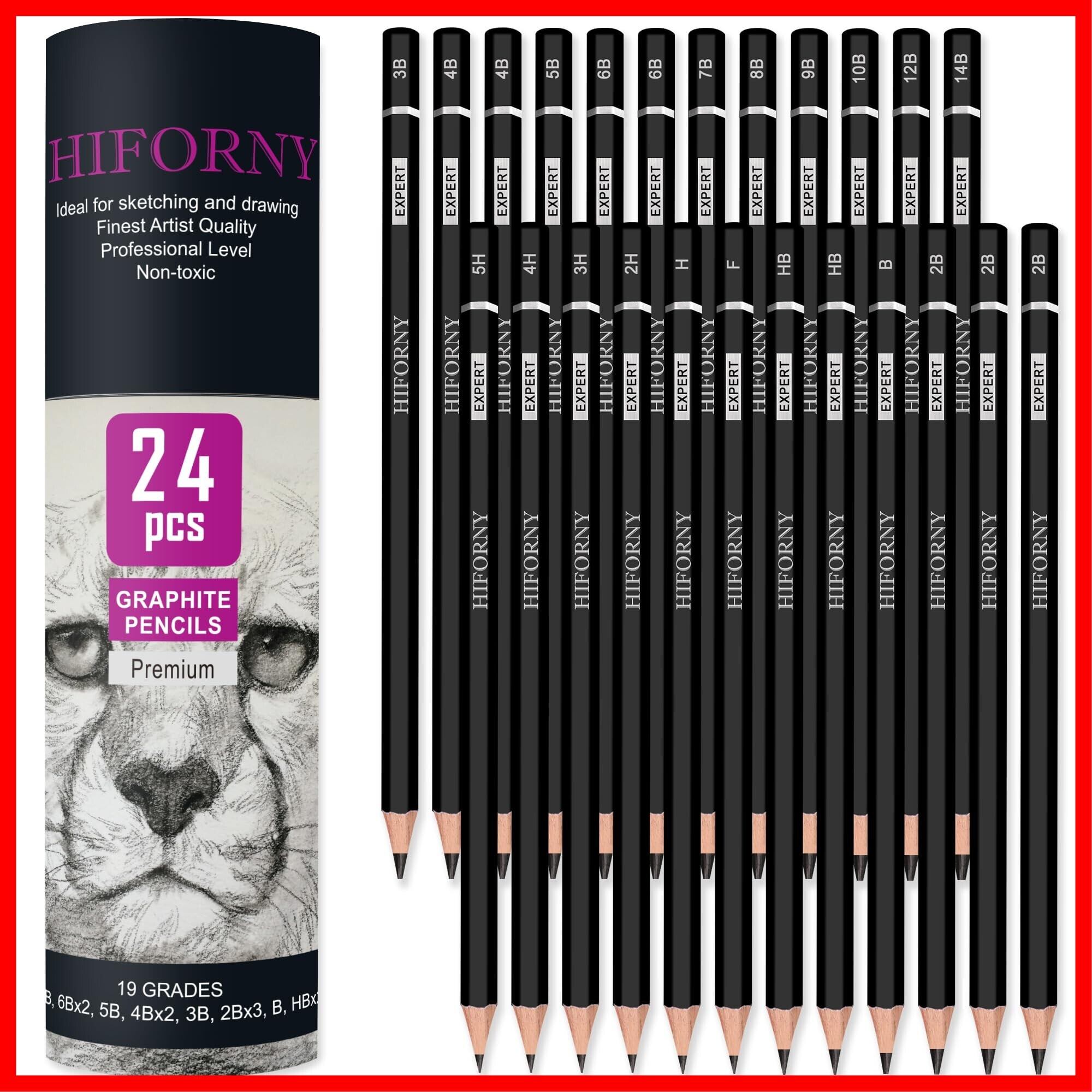 HIFORNY 24本 グラファイトスケッチ鉛筆セット - グラファイト鉛筆 (14B - 5H) スケッチ鉛筆 描画用鉛筆 製図用鉛筆 アート鉛筆 19グレード