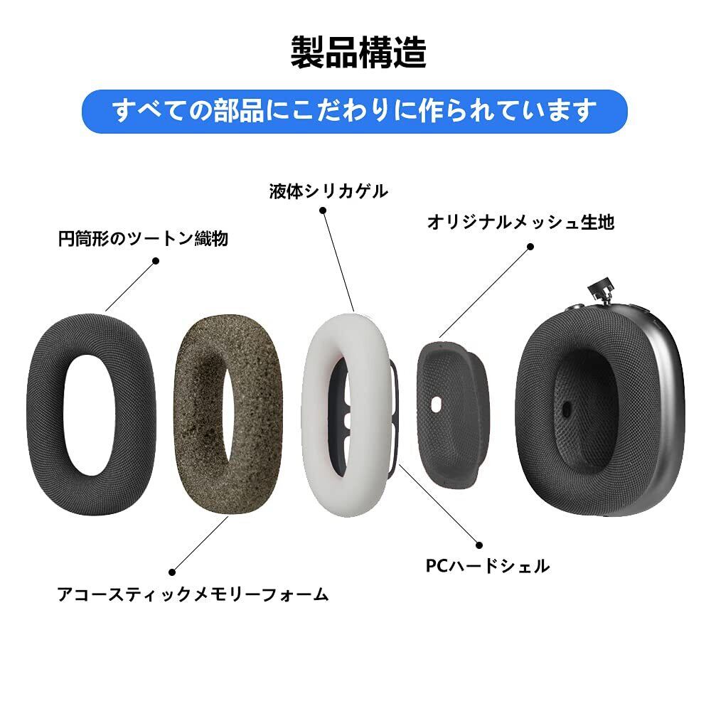 ◆適用モデル:AirPodsMaxヘッドフォン用イヤークッション。元のフィット感を実現するように設計されています