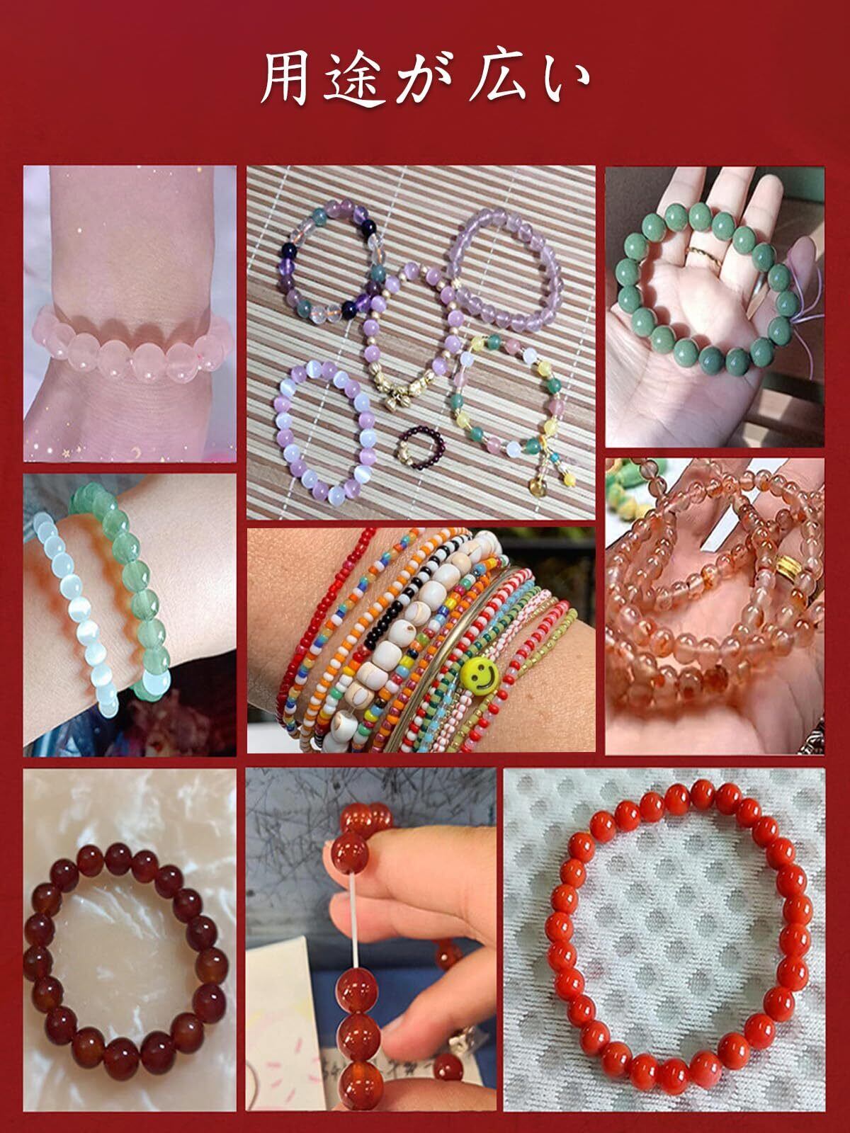【耐久性抜群】ブレスレットの制作や修理で使用するため、非常に丈夫で伸縮性も優れたゴムひもです。