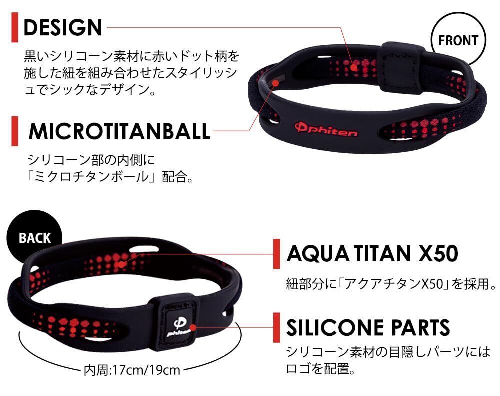 アメリカ限定で販売されていたX50のハイパワーブレスが日本上陸。黒いシリコーン素材に赤いドット柄を施した紐を組み合わせたスタイリッシュでシックなデザインです。 紐にはアクアチタンX50を採用し、シリコンにはミクロチタンボールを配合しています。