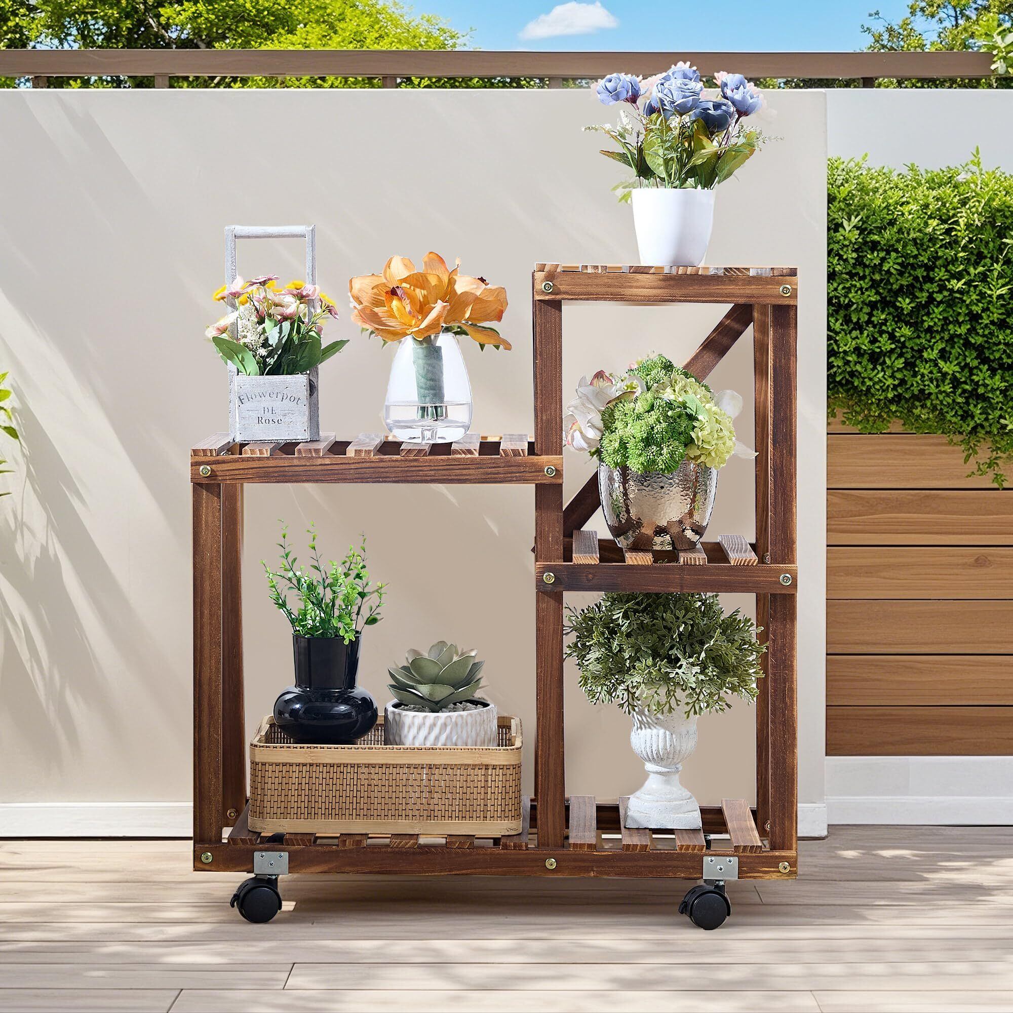VECELO フラワースタンド 鉢スタンド プランタースタンド 幅65cm 木製 鉢置き台 おしゃれ 植木鉢台 園芸ラック 花棚 植物スタンド 観葉植物 多肉植物 室内 屋外 丈夫 耐荷重100kg 排水性 通気 根腐れ防止 ブラウン