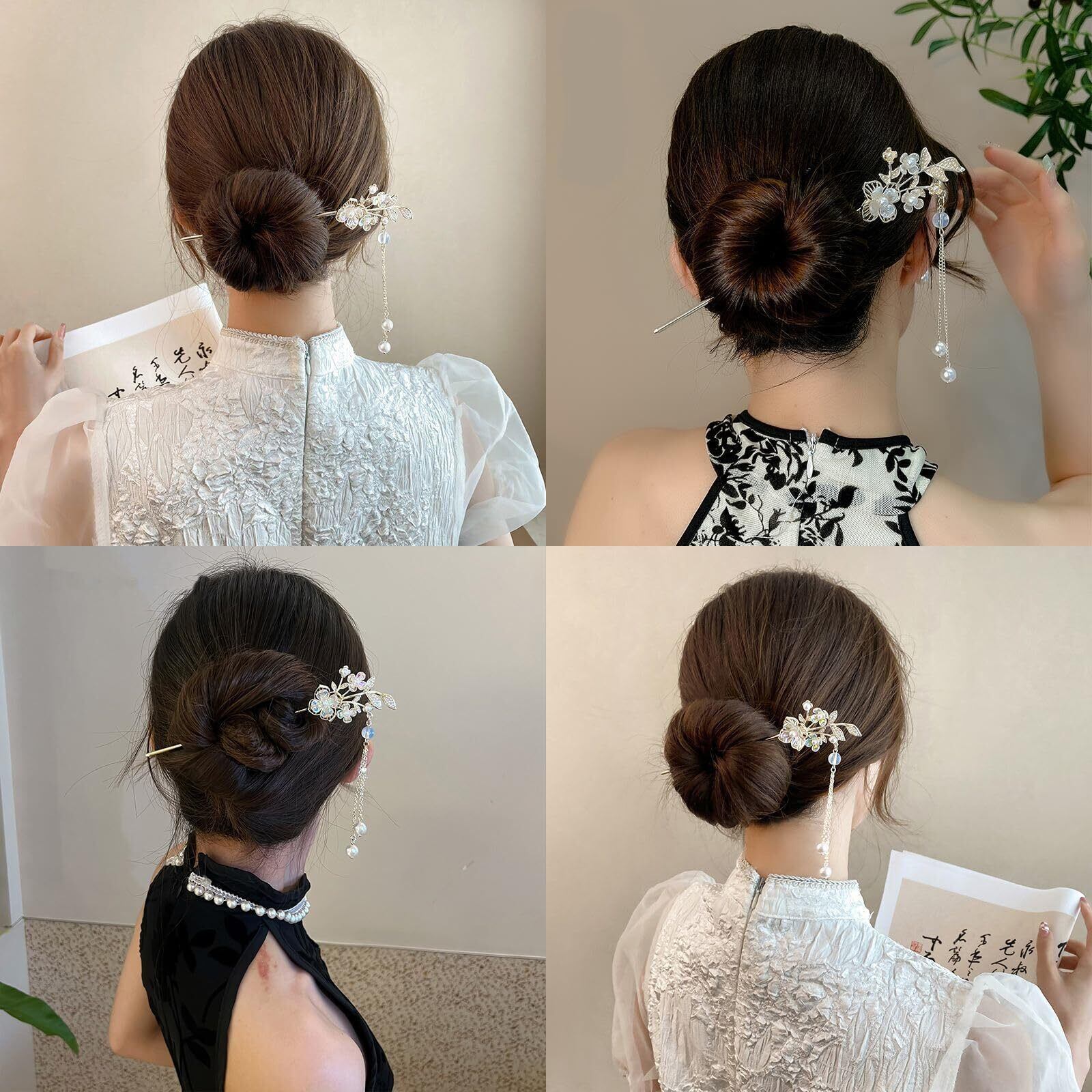 【高品質な素材】簪は主に合金材料で作られ、丈夫で耐久性があり、電気メッキされ、腐食しにくく、錆びにくく、長期間使用しても色と形を保ち、髪が長くて太くても、しっかり固定でき、簡単に落ちない。