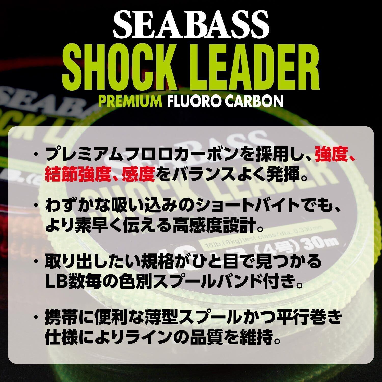 バリバスならではのこだわり満載、シーバスショックリーダー