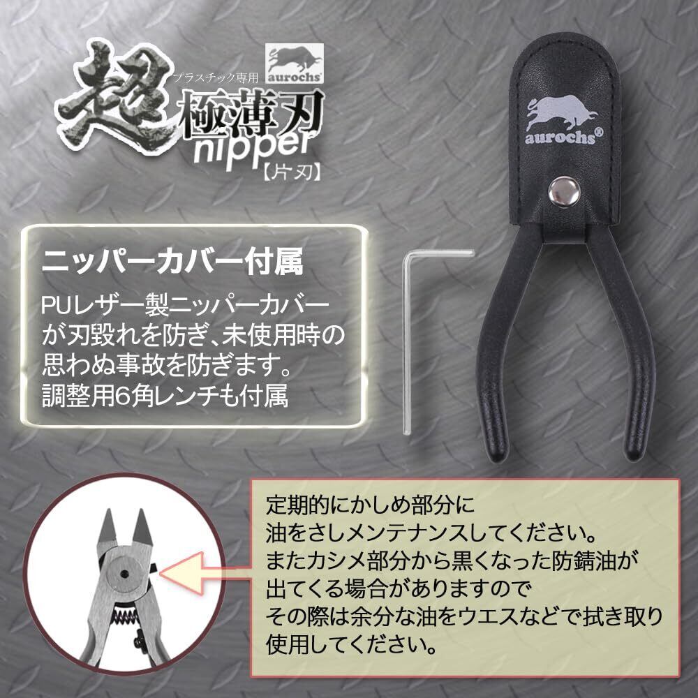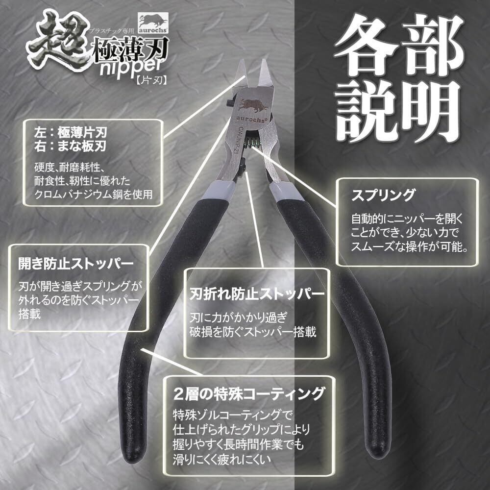 aurochs 超 極薄刃 ニッパー 片刃 精密 プラスチック専用 工具 プラモデル 模型 ゲートカット (ブラック&グレー/右手用)