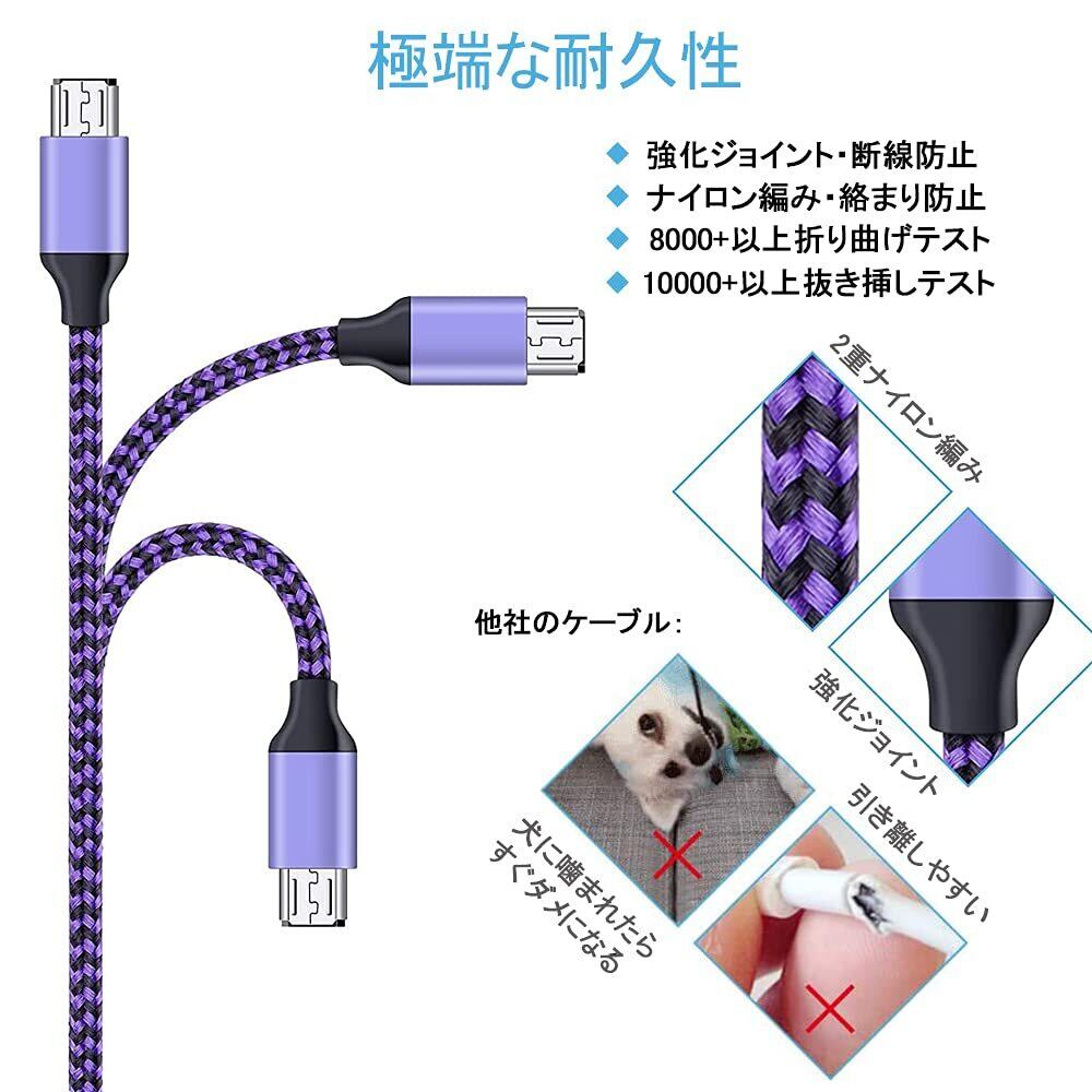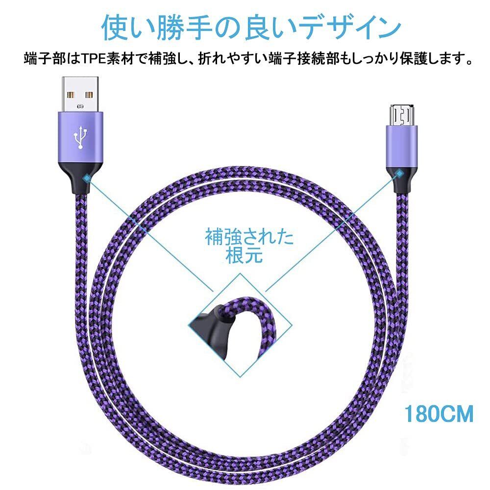 マイクロ usb ケーブル Micro B ケーブル【1.8M/2色】2.4A急速充電 PS4 充電ケーブル ナイロン編み Android スマホ充電ケーブル アンドロイド高速充電ケーブル タイプbケーブル B充電コード 高速データ転送 Sharp Aquos Pad/Zeta, Sony Xperia J1/A/Z3,などMicro B端子機器対応