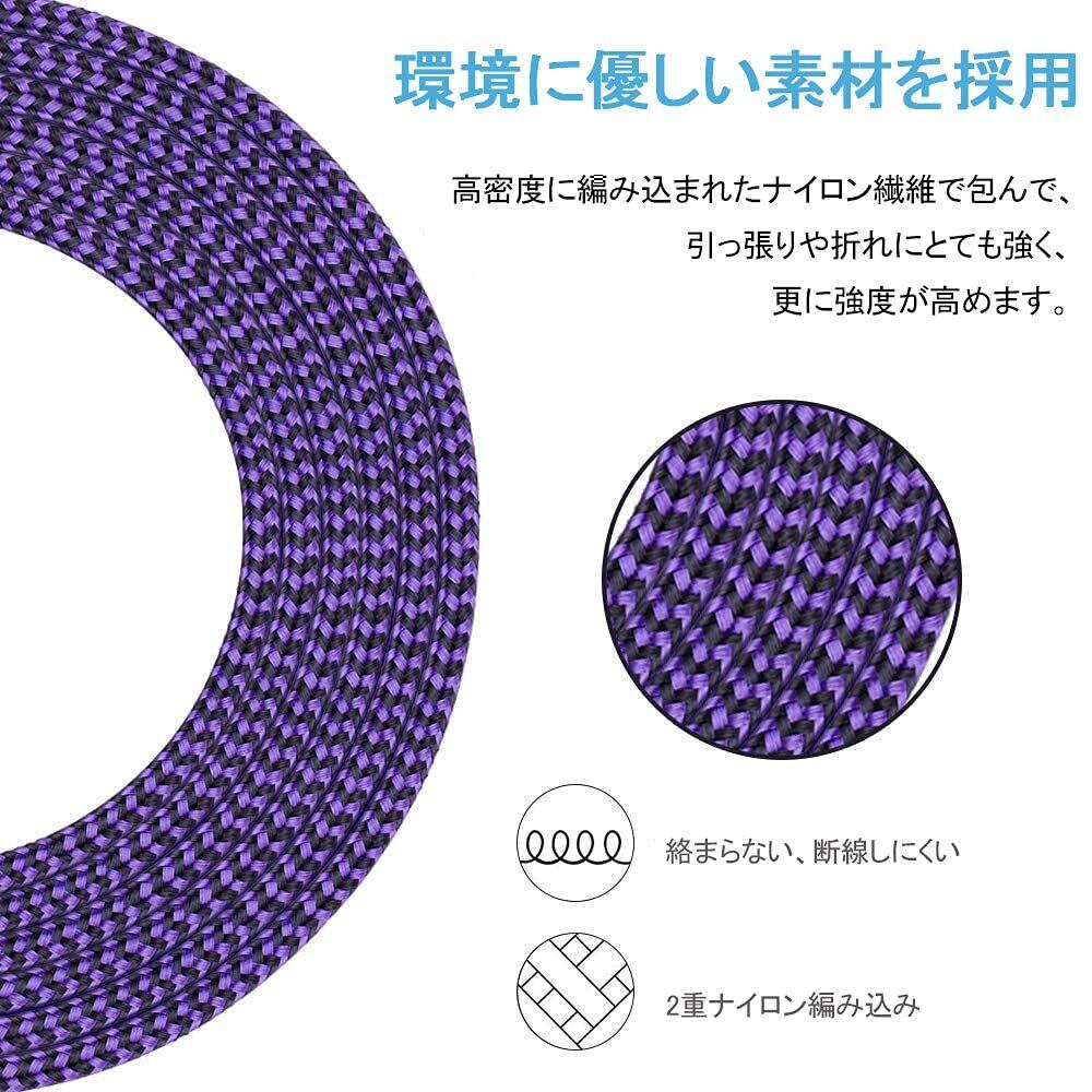 【3重編込のナイロン素材】3重に編み込まれた高耐久ナイロンを採用、ケーブルの強さと柔らかさを両立し、コード部分はねじれや折れに強く、断線しにくい。内部も高品質な素材で仕上げており、充電を繰り返しても劣化しにくく、長期間お使いいただけます。