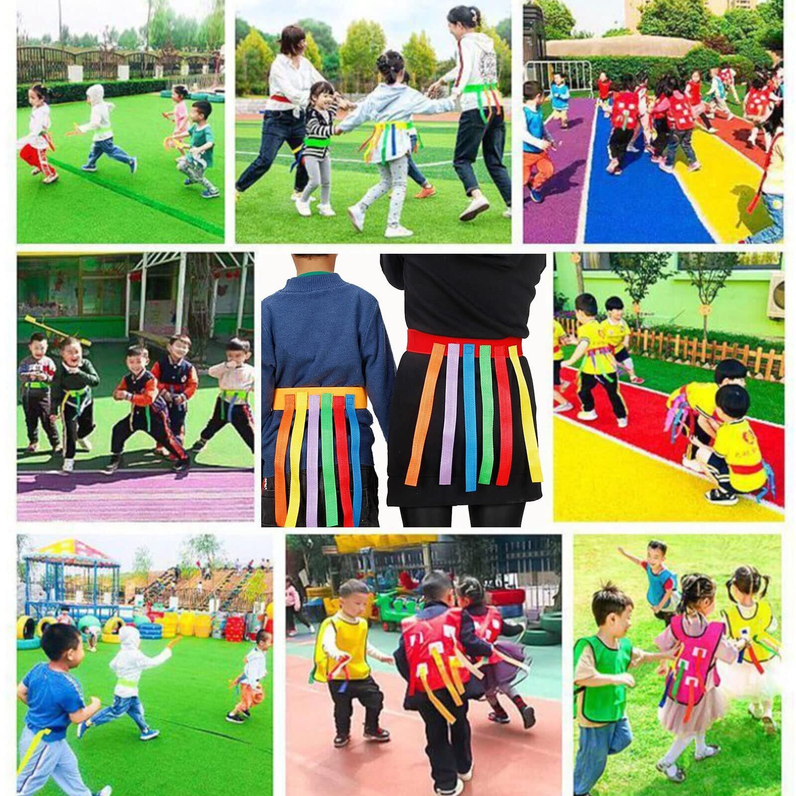 ベルトを腰に付けて、色紐を後ろに付けて、お互いにそれを取ろうと追いかける鬼ごっこです。