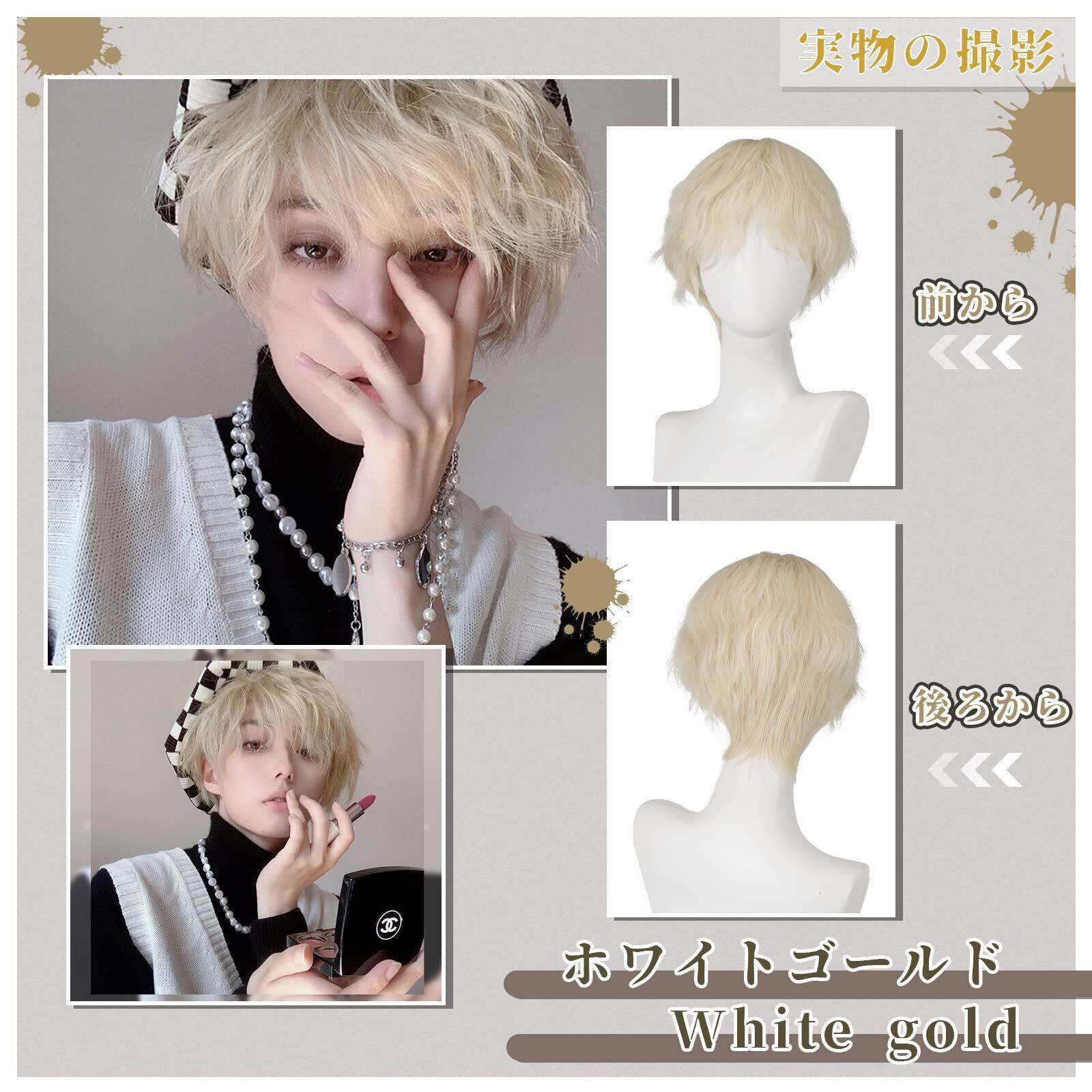 BARSDAR ウィッグ メンズ 男装 かつら ショート インナーカラー フルウィッグ 黒 男性 原宿 イケメン ハンサム 自然 小顔 耐熱 人気 ファッション イメチェン 男女兼用 グラデーション 短髪 whitegold ホワイトゴールド | hananoki