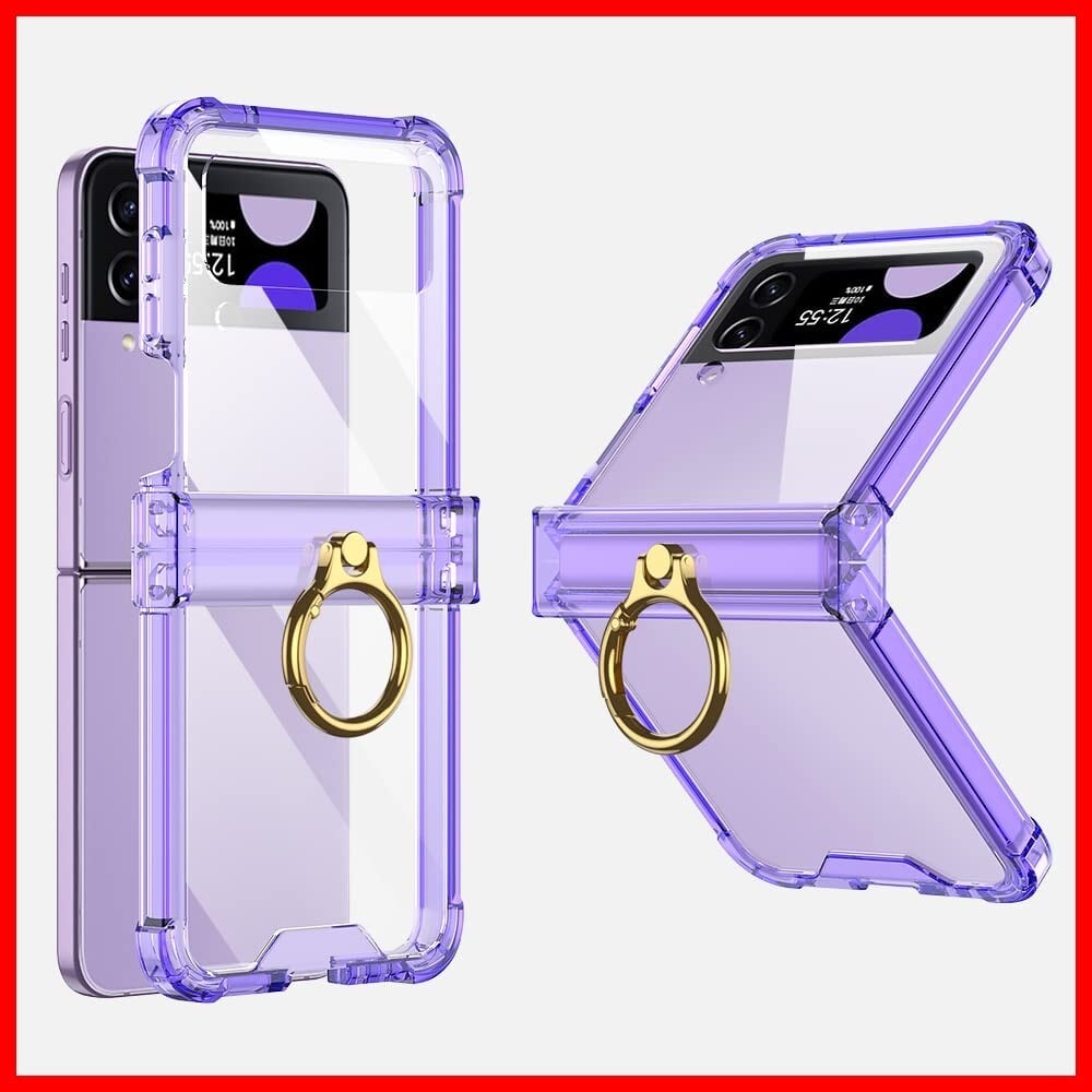 Galaxy Z Flip4 ケース クリア Samsung ギャラクシーZ フリップ 4 / docomo SC-54C / au SCG17 用 カバー リング付き ヒンジ保護 Uovon スマホケース 耐衝撃 スタンド機能 ストラップ穴付き 超軽量 超薄型 黄変防止 おしゃれ・パープル