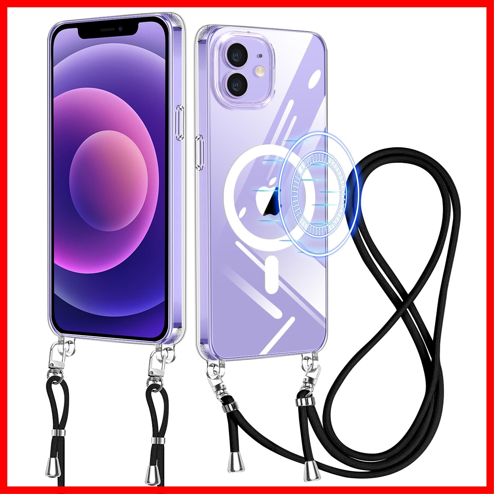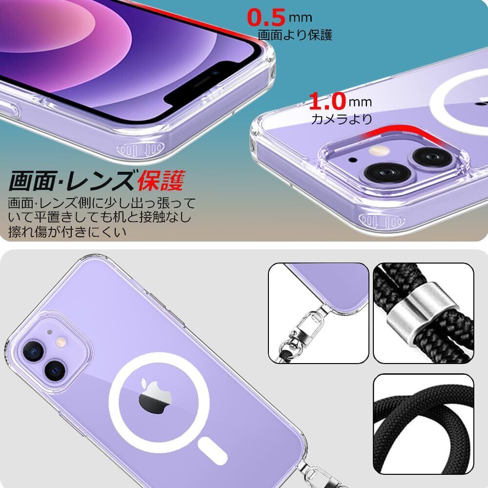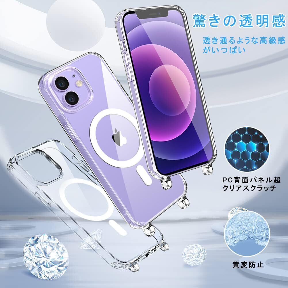 iPhone 12 用 ケース クリア ショルダー iPhone 12 Pro 用 ケース MagSafe対応 iphone12pro 12 用 スマホケース ワイヤレス充電 アイフォン12 12Pro カバー 肩掛け 斜めかけ 縄掛けケース PC+TPU 2重構造 薄型 軽量 長さ調整可能 取り外し可能 ネックストラップ ショルダー ケース 落下防止 紛失防止 (透明)