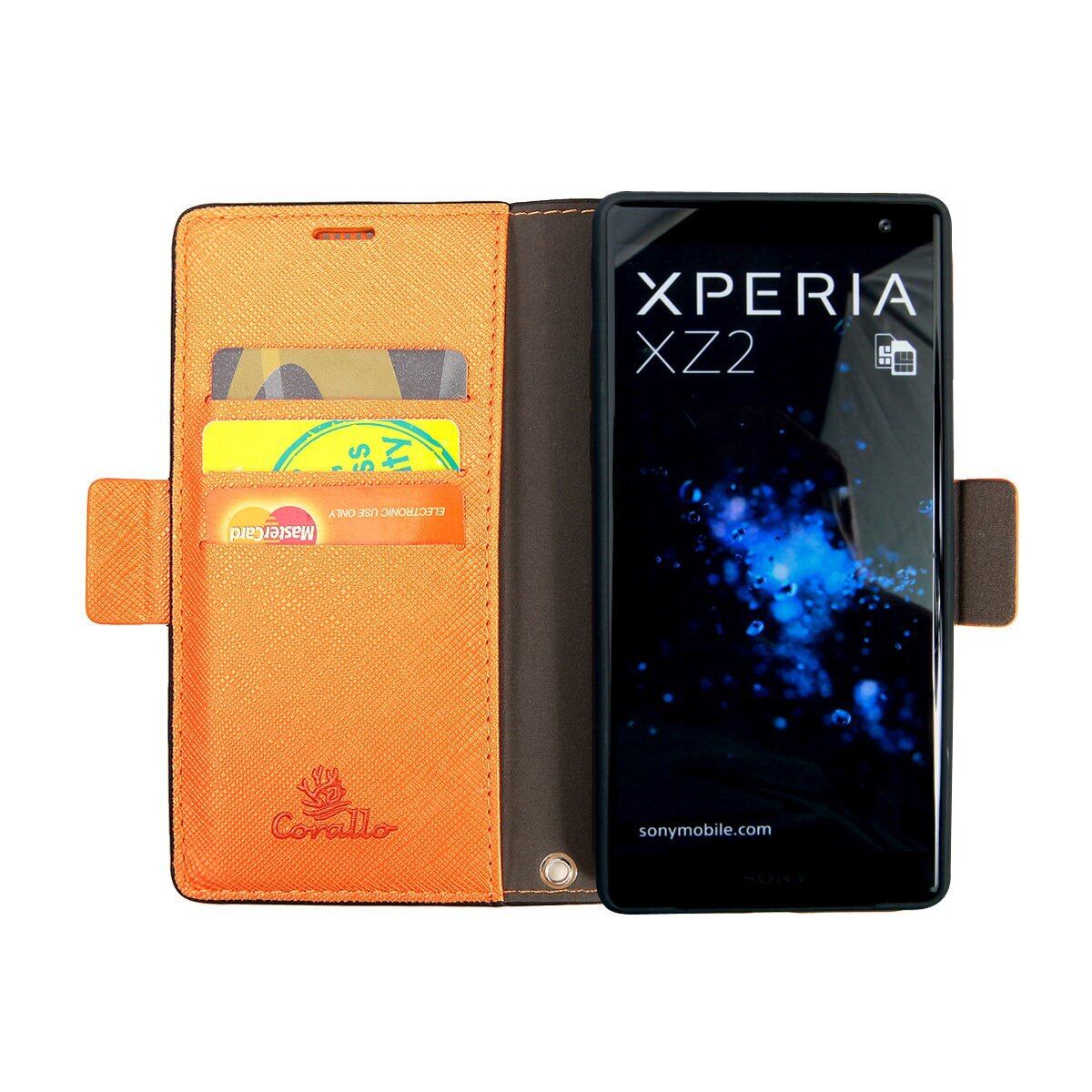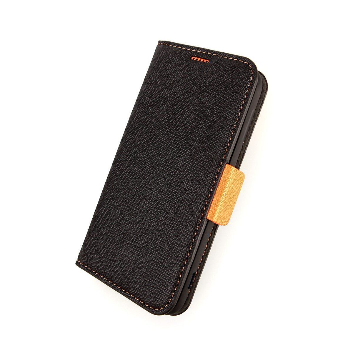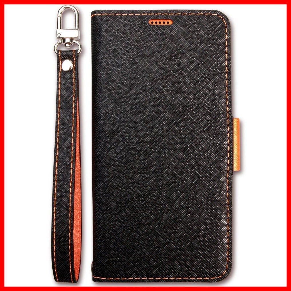 【Corallo】 Xperia XZ2 対応 ケース 手帳型 ストラップ 付き マグネット 式 ベルト スタンド 機能 薄型 スリム 手帳 レザー カバー カード 収納 付 [ Sony XperiaXZ2 ソニー エクスペリア XZ2 対応 ] NU ブラック×オレンジ | hananoki