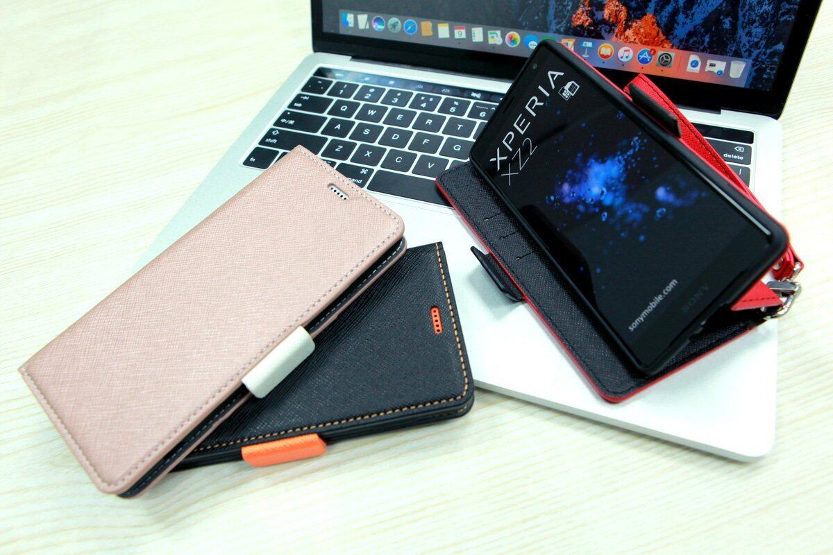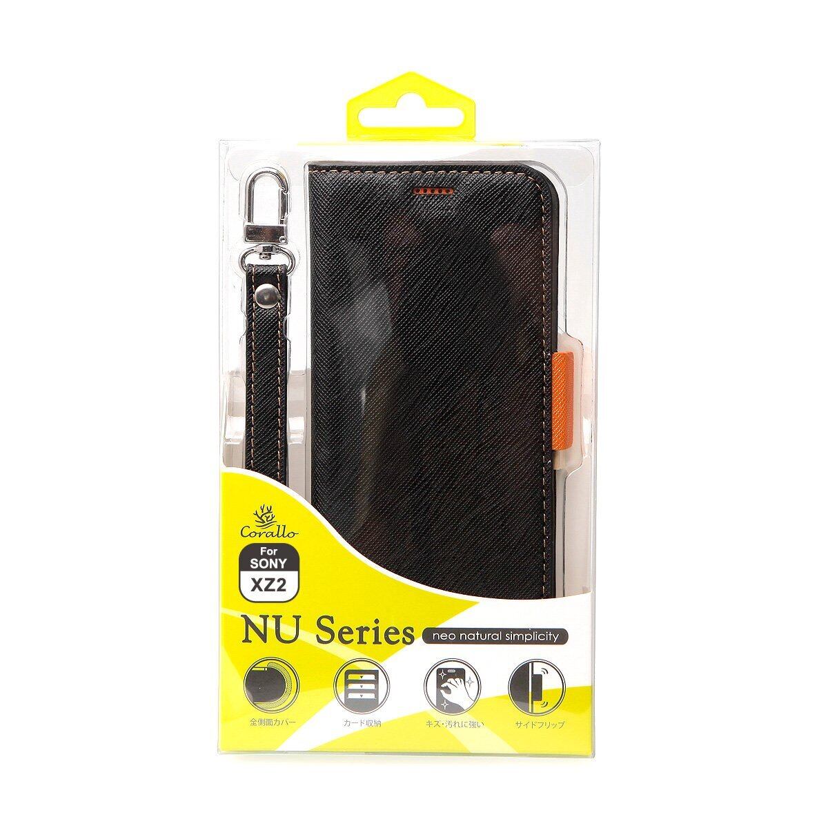 【Corallo】 Xperia XZ2 対応 ケース 手帳型 ストラップ 付き マグネット 式 ベルト スタンド 機能 薄型 スリム 手帳 レザー カバー カード 収納 付 [ Sony XperiaXZ2 ソニー エクスペリア XZ2 対応 ] NU ブラック×オレンジ