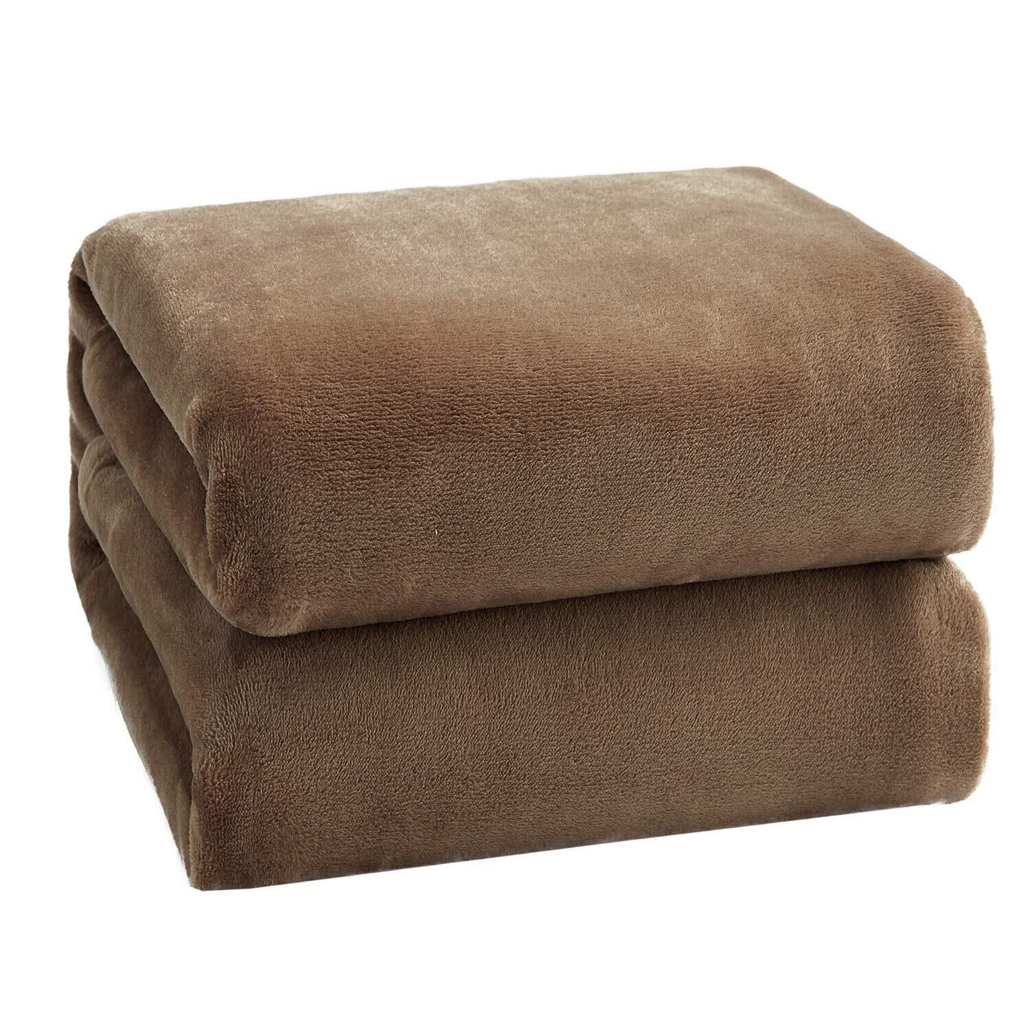 Hansleep 毛布 ダブル 冬用 ブランケット 大きめ 180x200cm 大判 マイクロファイバー 柔らかく肌触り フランネル 洗える 軽量 静電防止 四季適用 (180x200,キャメル)