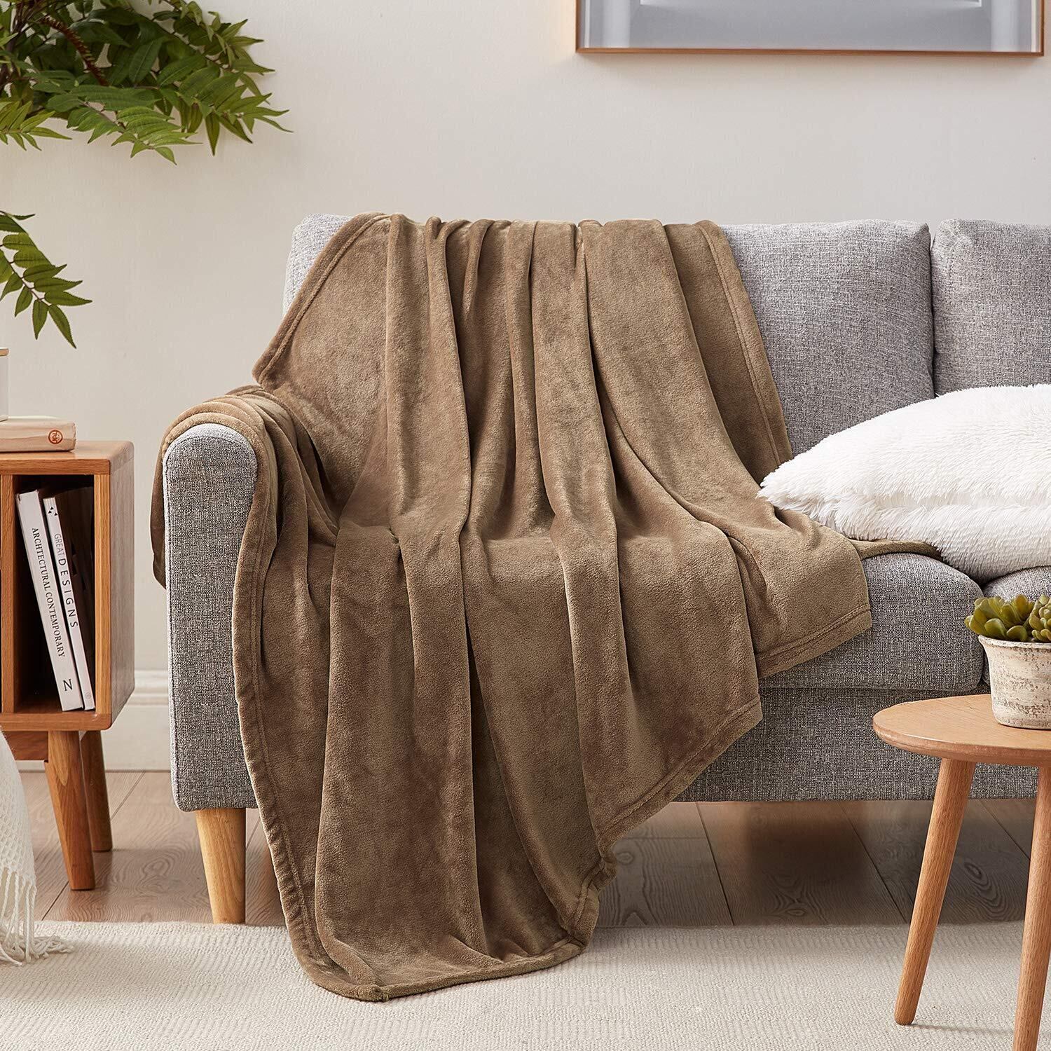 Hansleep 毛布 ダブル 冬用 ブランケット 大きめ 180x200cm 大判 マイクロファイバー 柔らかく肌触り フランネル 洗える 軽量 静電防止 四季適用 (180x200,キャメル) | hananoki