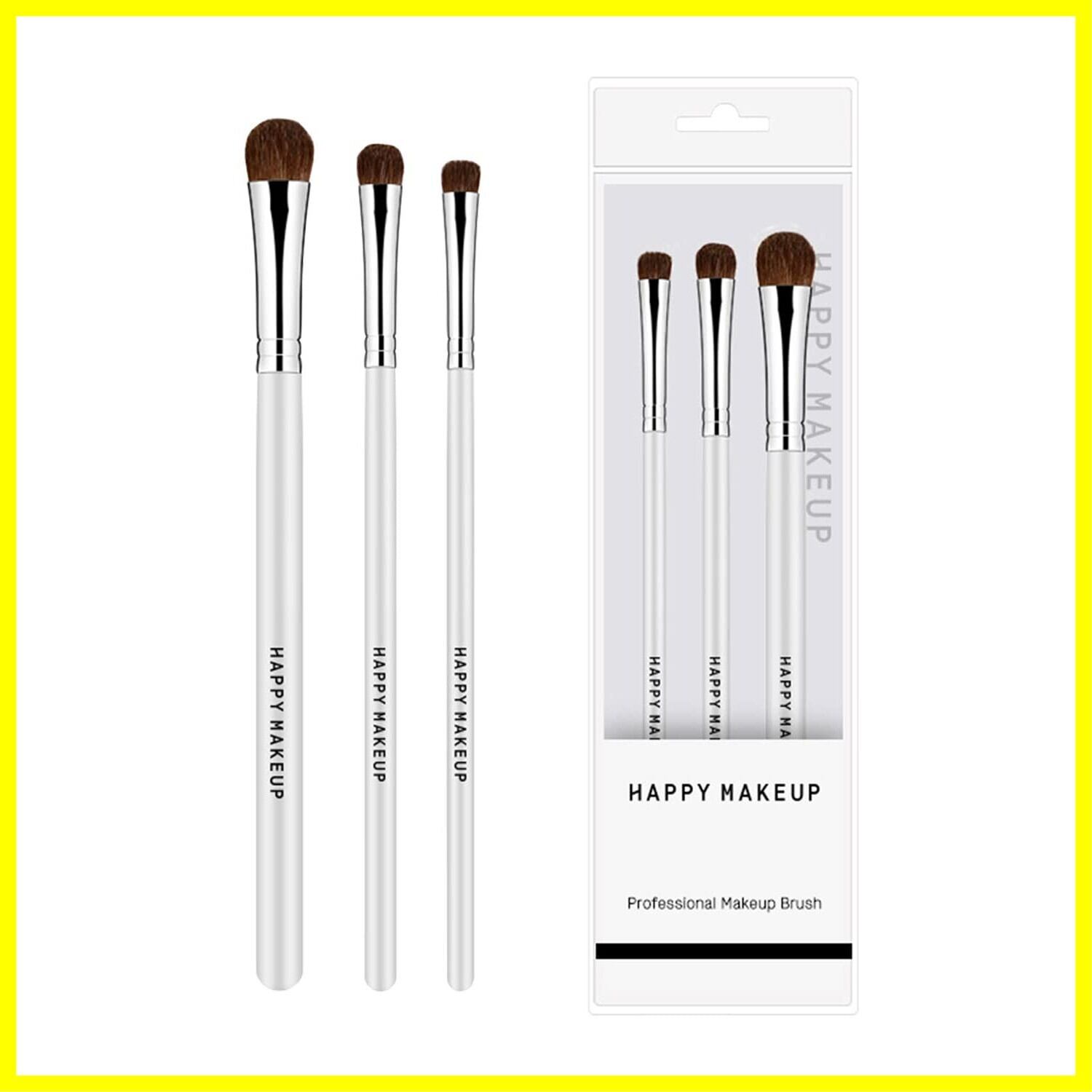 【パッケージ】アイシャドウブラシ 3本セット。大きさの異なる3つのブラシが、メイクツールを次のレベルに引き上げて、より美しく見せることができます。メイクアップ アーティスト、初心者、スタジオ、サロン、自宅旅行での使用に適しています。