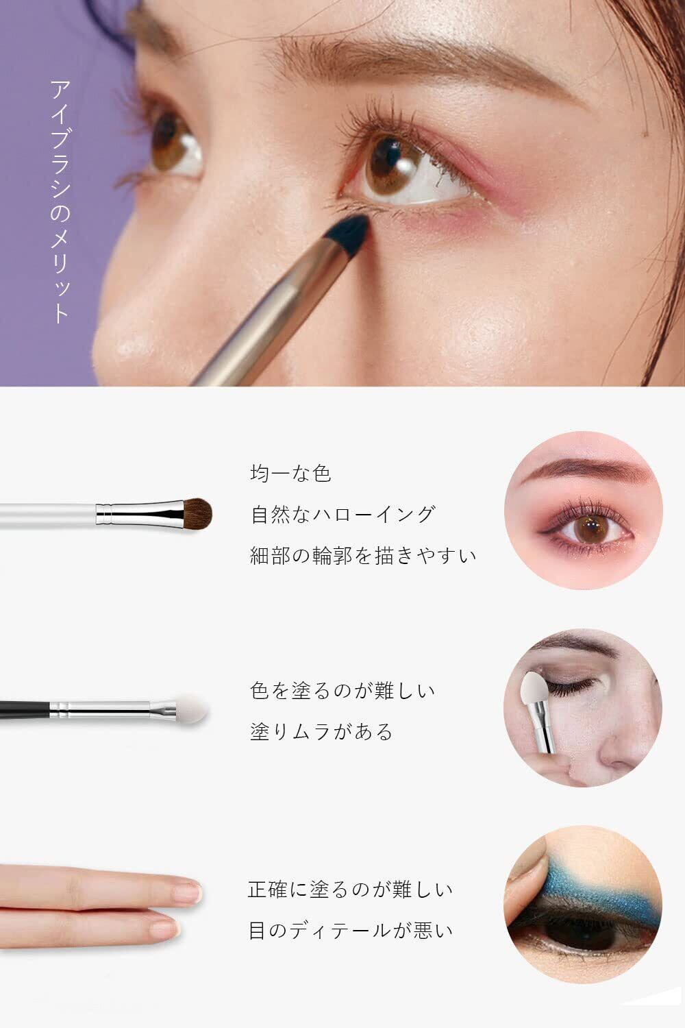 【アイブラシのメリット】ブレンドと塗布が簡単で、に涙袋の線を描くのとまぶたに使用できます、均一なカバレッジと正確な塗布が可能です。指やチップだで濃さの調節が難しかったり、やりすぎ感のある目元になってしまうこともよくあります。