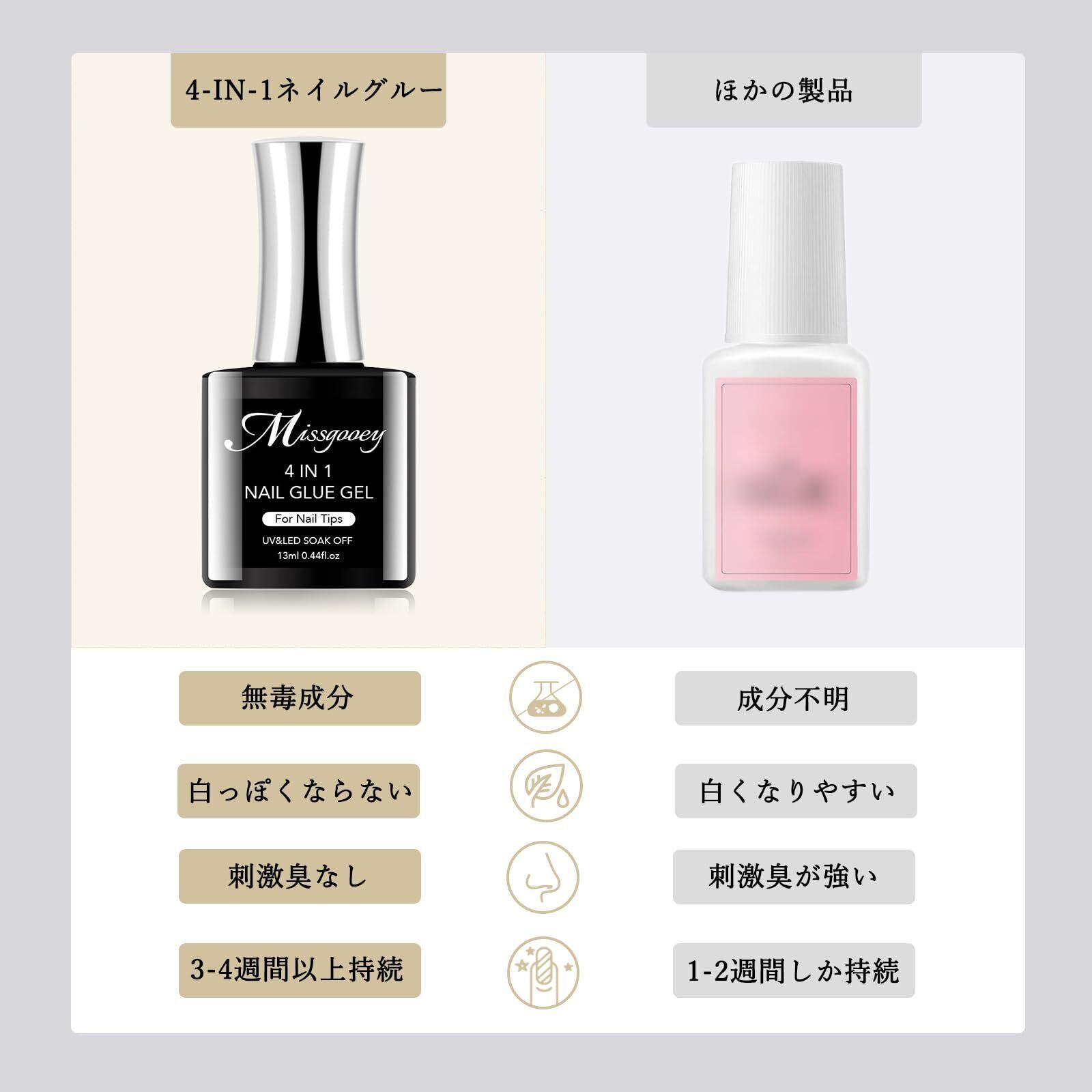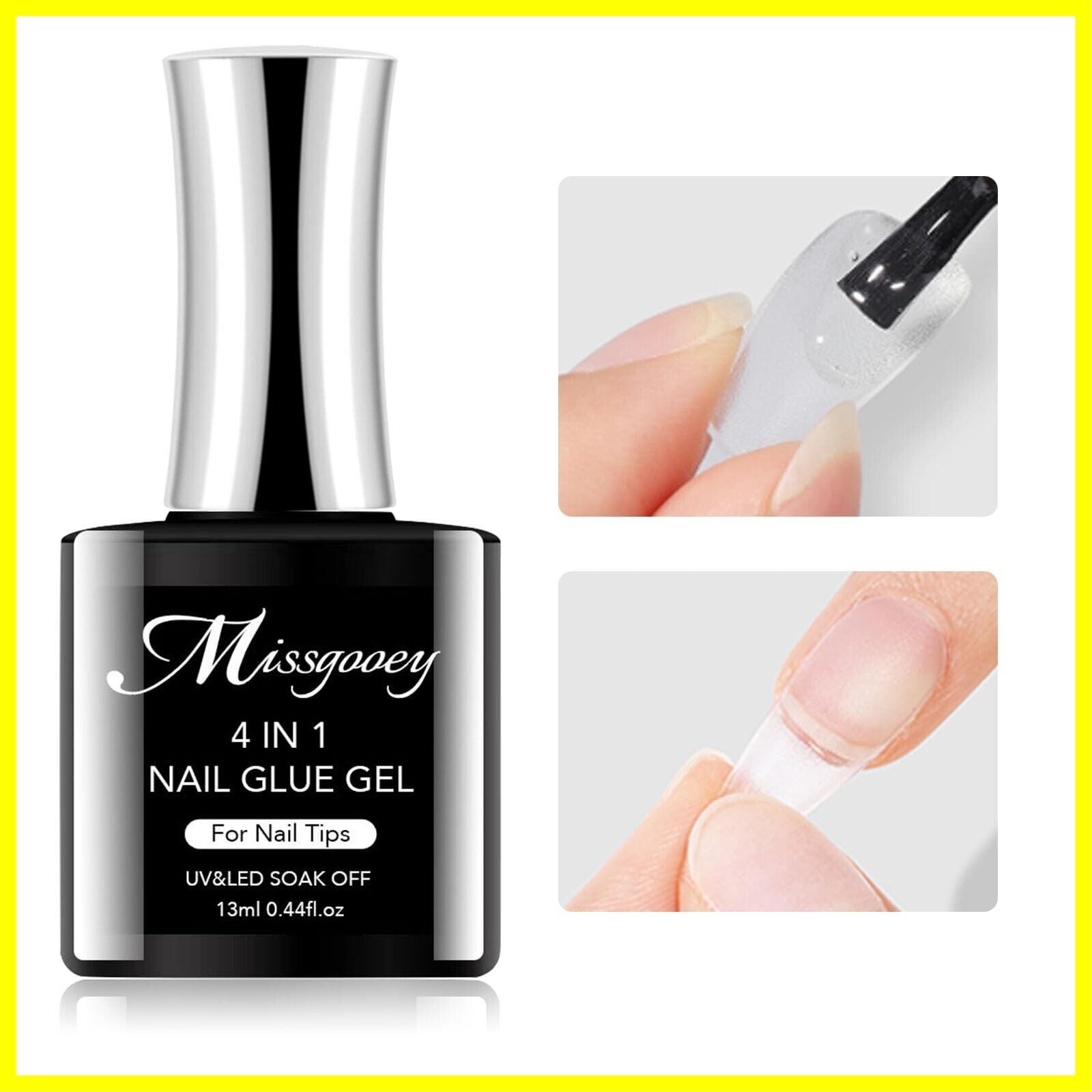 Missgooey ネイルグルー ネイルチップ接着剤 4-IN-1 多機能ネイルグルー UV/LED対応 強力な接着力 初心者&プロ適用