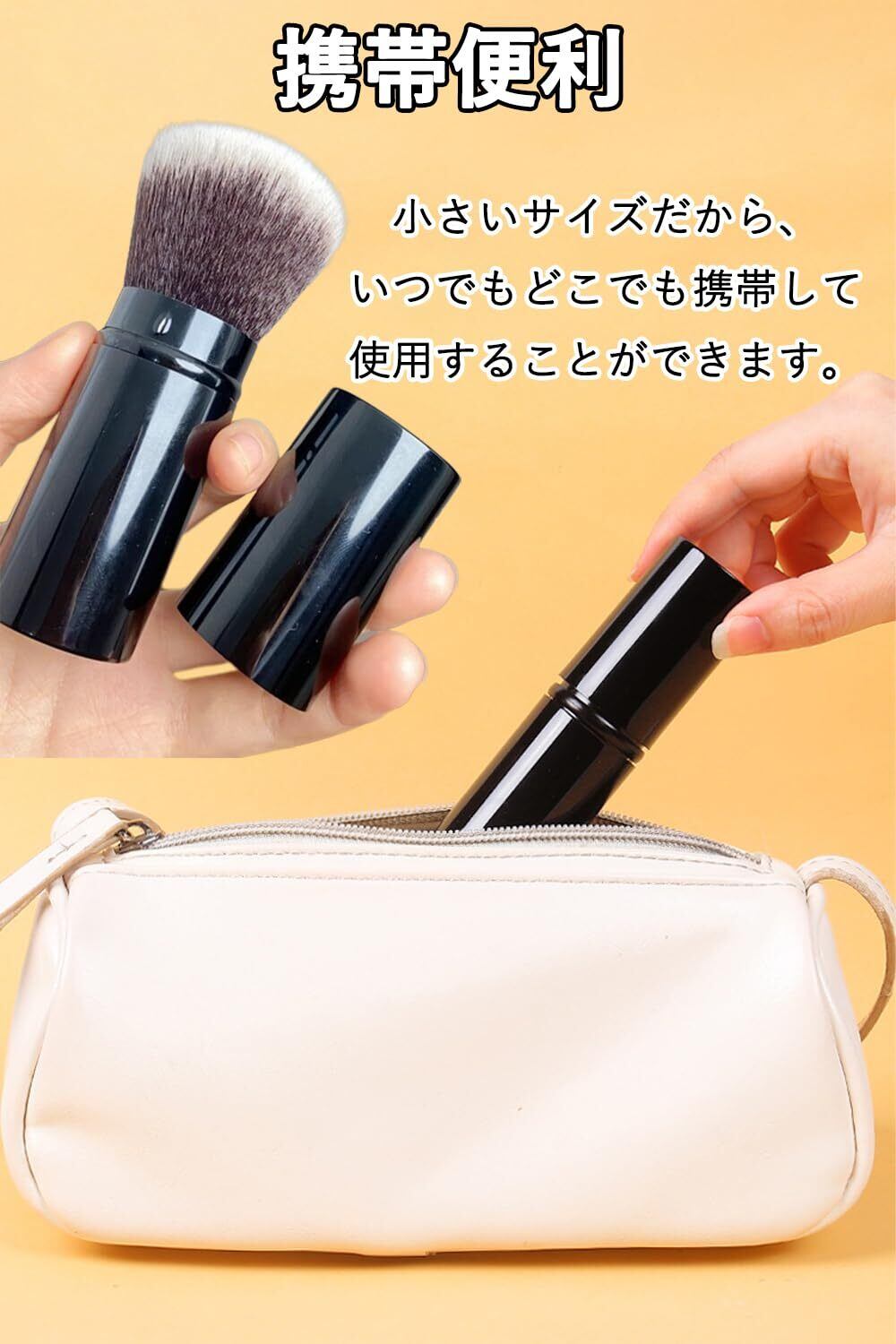 【使用便利】スライド式収納タイプのメイクブラシ、毛先を収納できるタイプです、携帯に便利なメイクブラシです。