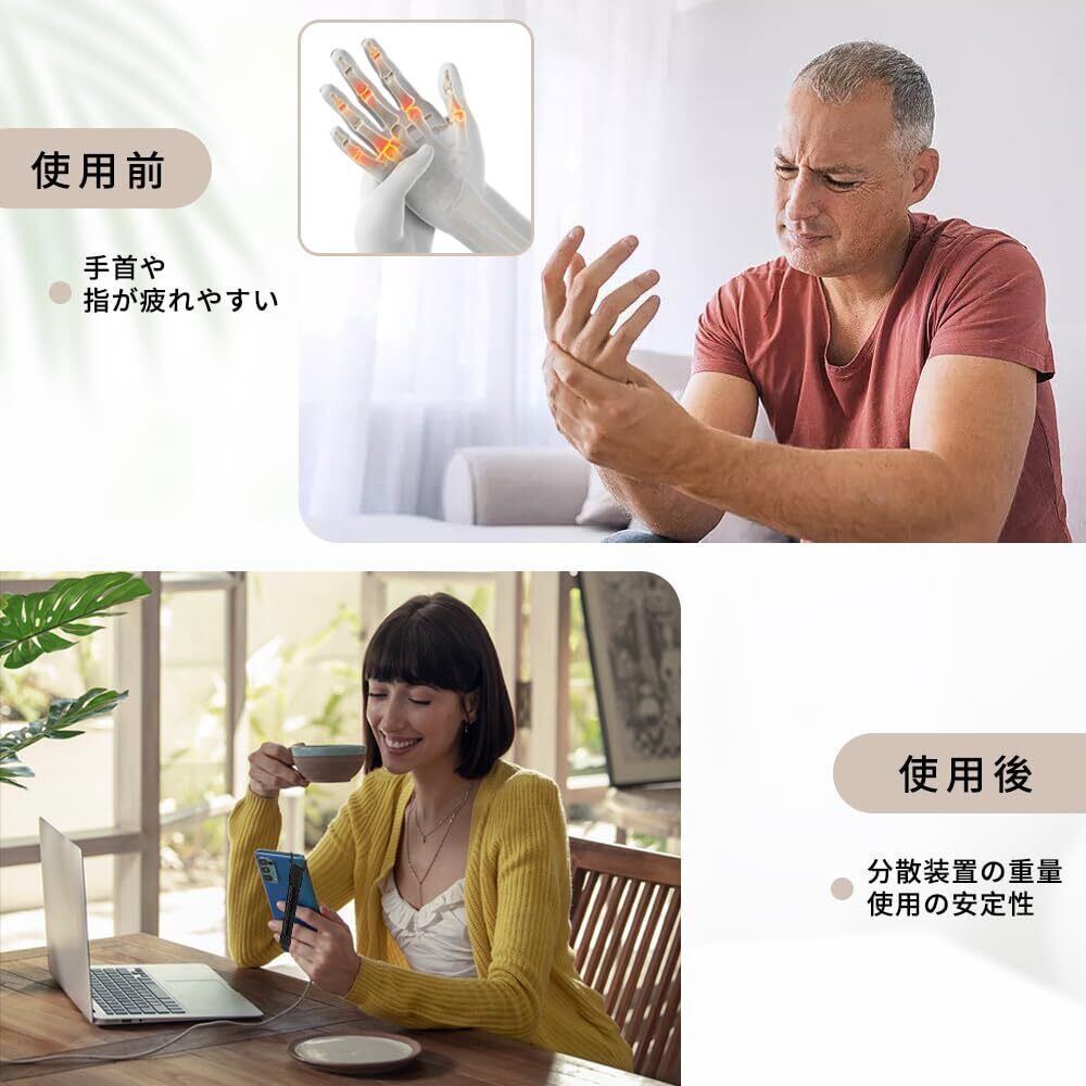 本製品を使用すれば、重心を支え、操作中の手の疲れや携帯電話の落下を防ぐことができる。