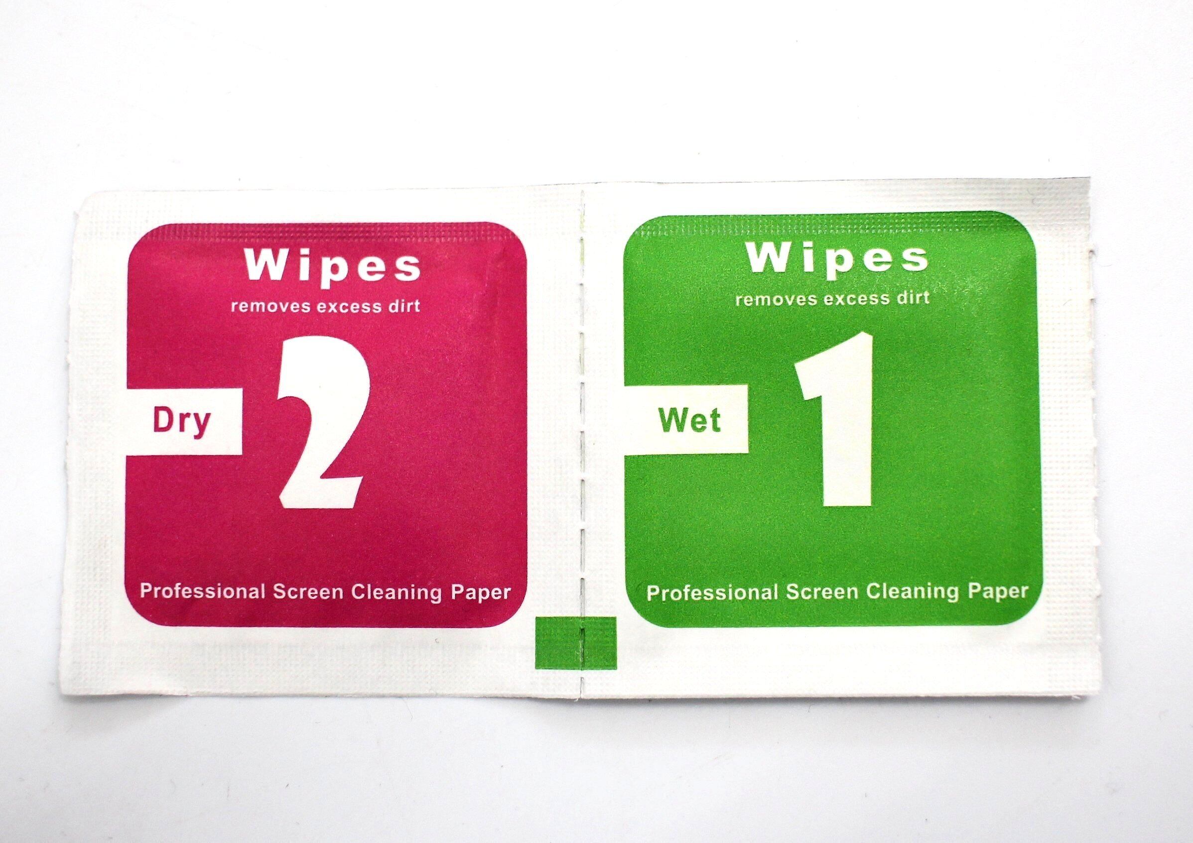 液晶画面クリーニングシート;2枚 (Wet & Dry) ※緑色がウエット、赤がドライです