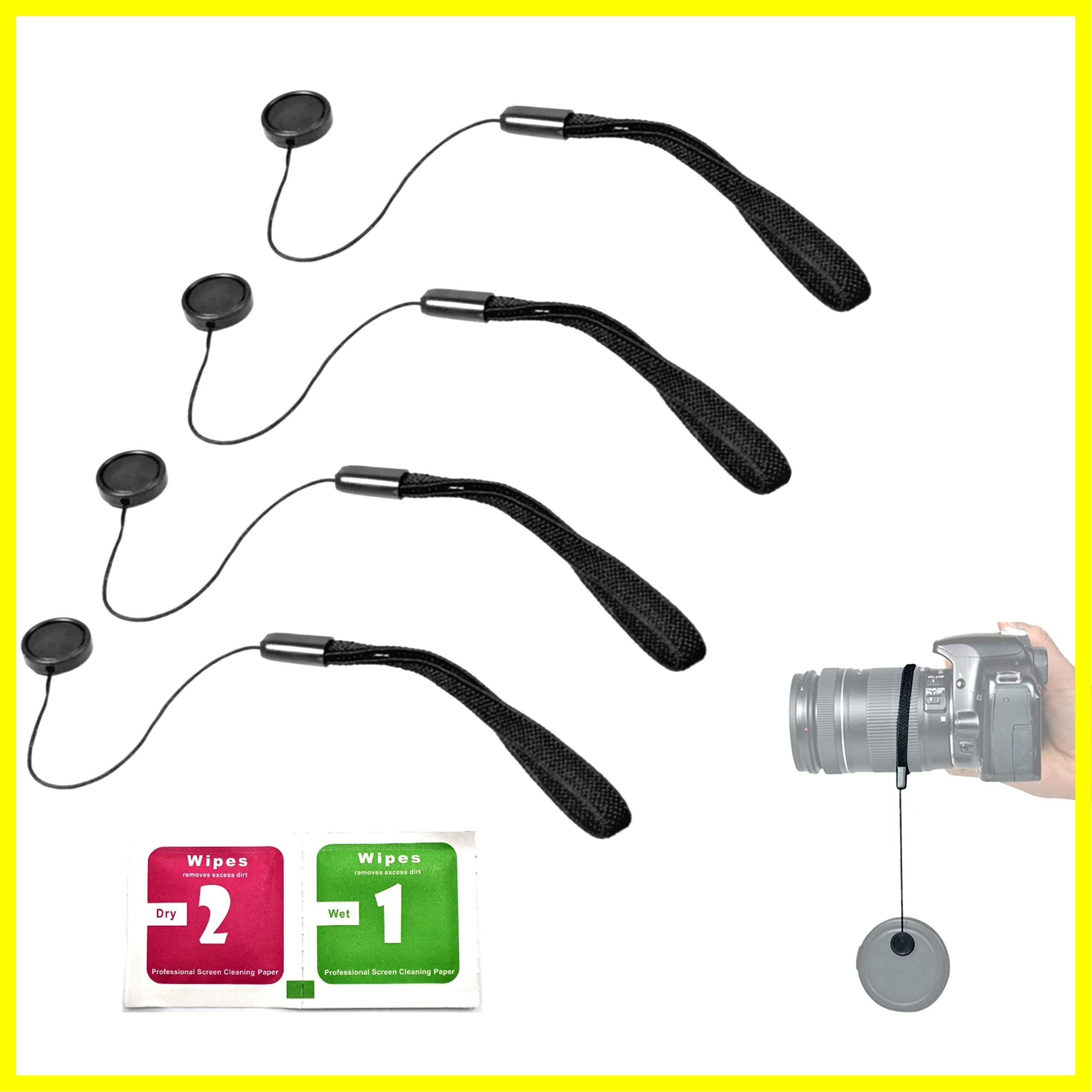 カメラ レンズ キャップ 落下 防止 ストラップ 紛失防止 ラバー ホルダー 4本セット+液晶スクリーン クリーニングシート (2枚/Wet & Dry)/ For Canon Nikon PENTAX Panasonic OLYMPUS SONY 一眼レフ ミラーレス コンパクトデジカメ etc. レンズキャップに適用 | hananoki