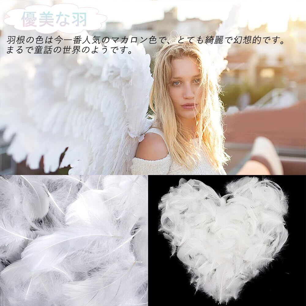 優美な羽:羽根の色は今一番人気のマカロン色で(ホワイト)、とても綺麗で幻想的です。まるで童話の世界のようです。柔らかい羽毛を使用しており華やかな印象を与えます。