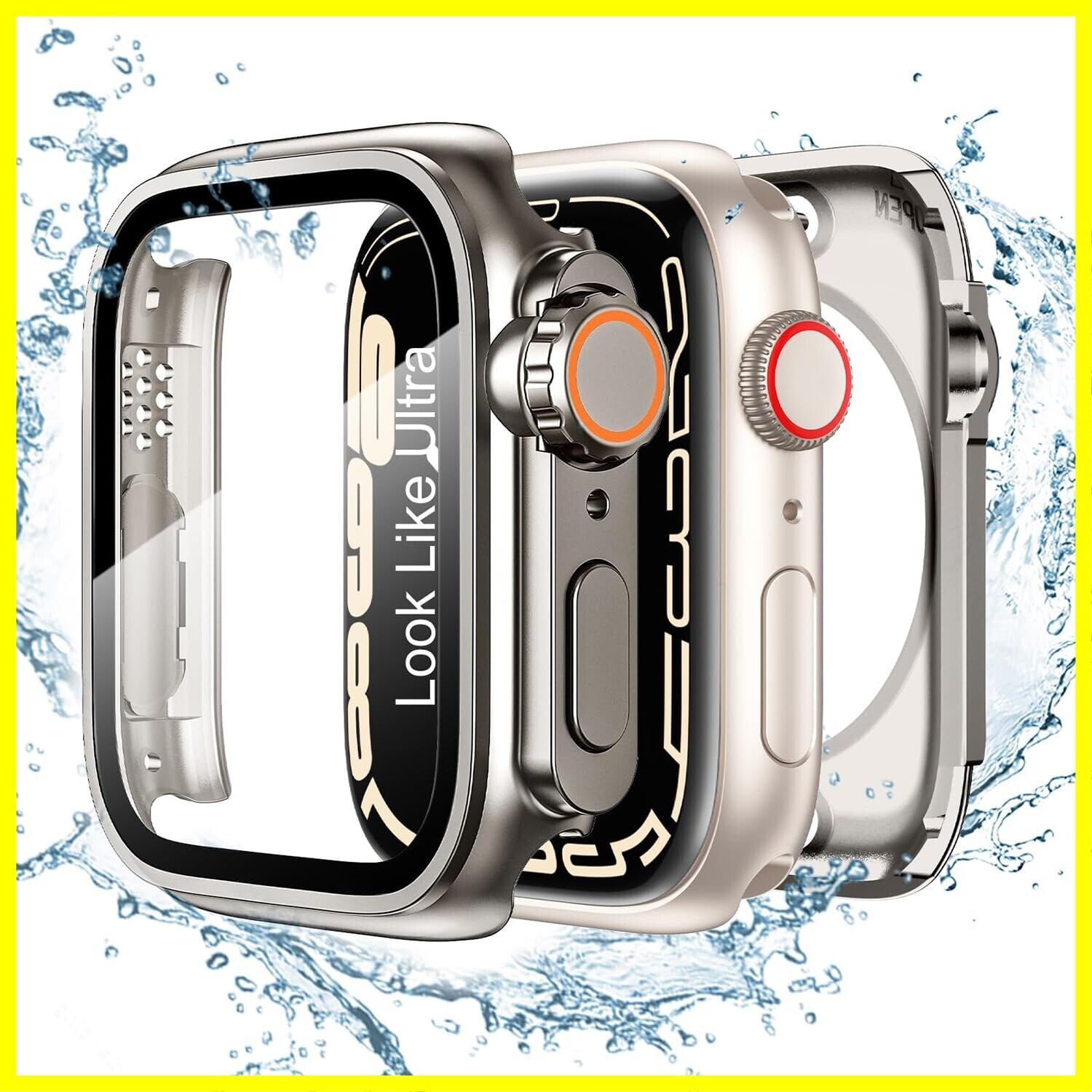 TALENANA for Apple Watchケース 45mm/44mm/41mm/40mm 瞬時にApple Watch Ultraに変身する 防水 series 9/8/7/SE/6/5/4 液晶保護フィルム+保護ケース+背面ケースの3 in 1デザイン 一体型 液晶保護 耐衝撃 高透過率(Series 9/8/7、45mm、チタンカラー) | hananoki