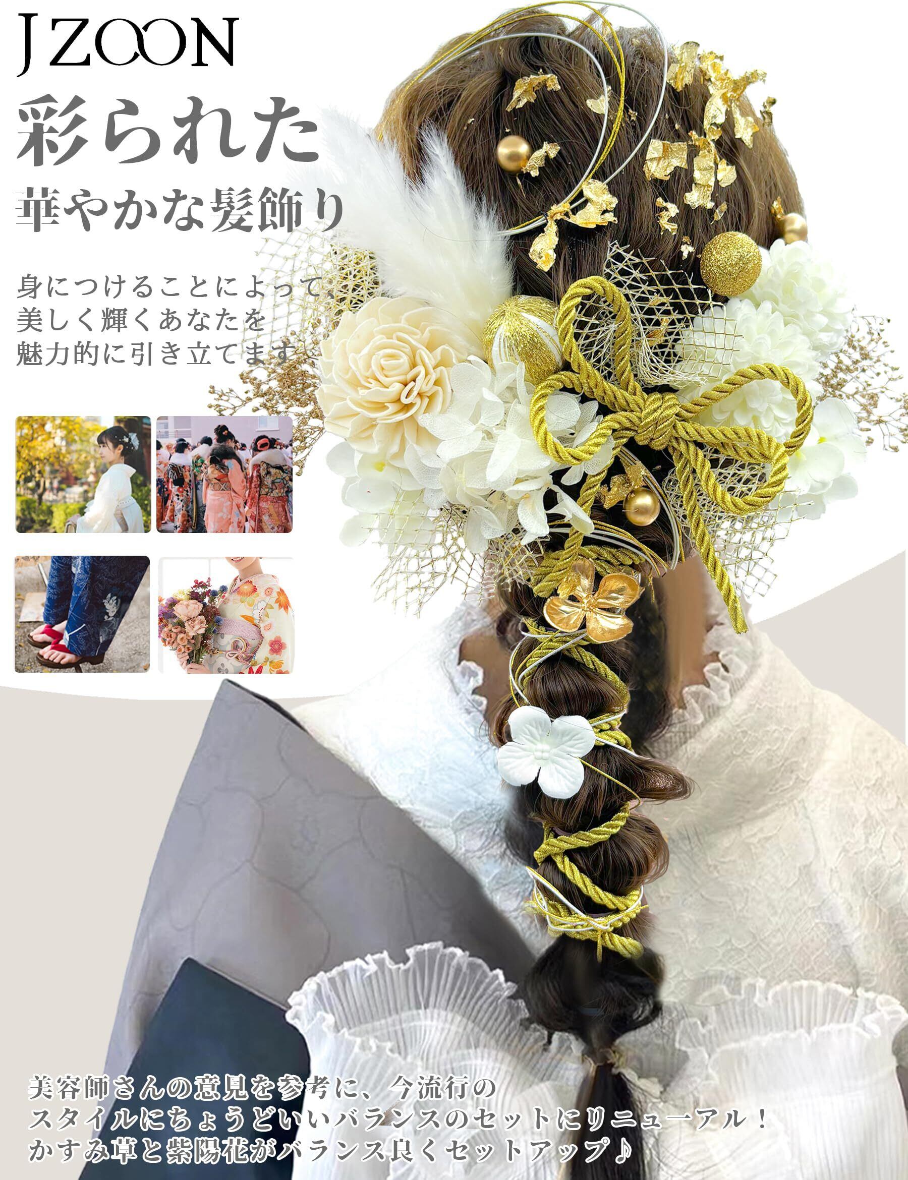 [JZOON] 髪飾り 10色 ドライフラワー 造花飾り 水引 紐 ヘアーアクセサリー 和玉 かすみ草 金箔 人気 和服 着物 振袖 袴 花 浴衣 成人式 七五三 結納 卒業式 入学式 結婚式 発表会 TC001