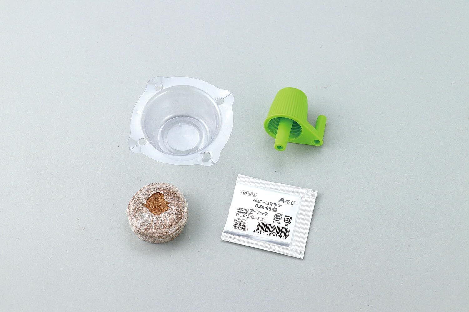 セット内容:プラ皿、ジョーロキャップ、圧縮土、種