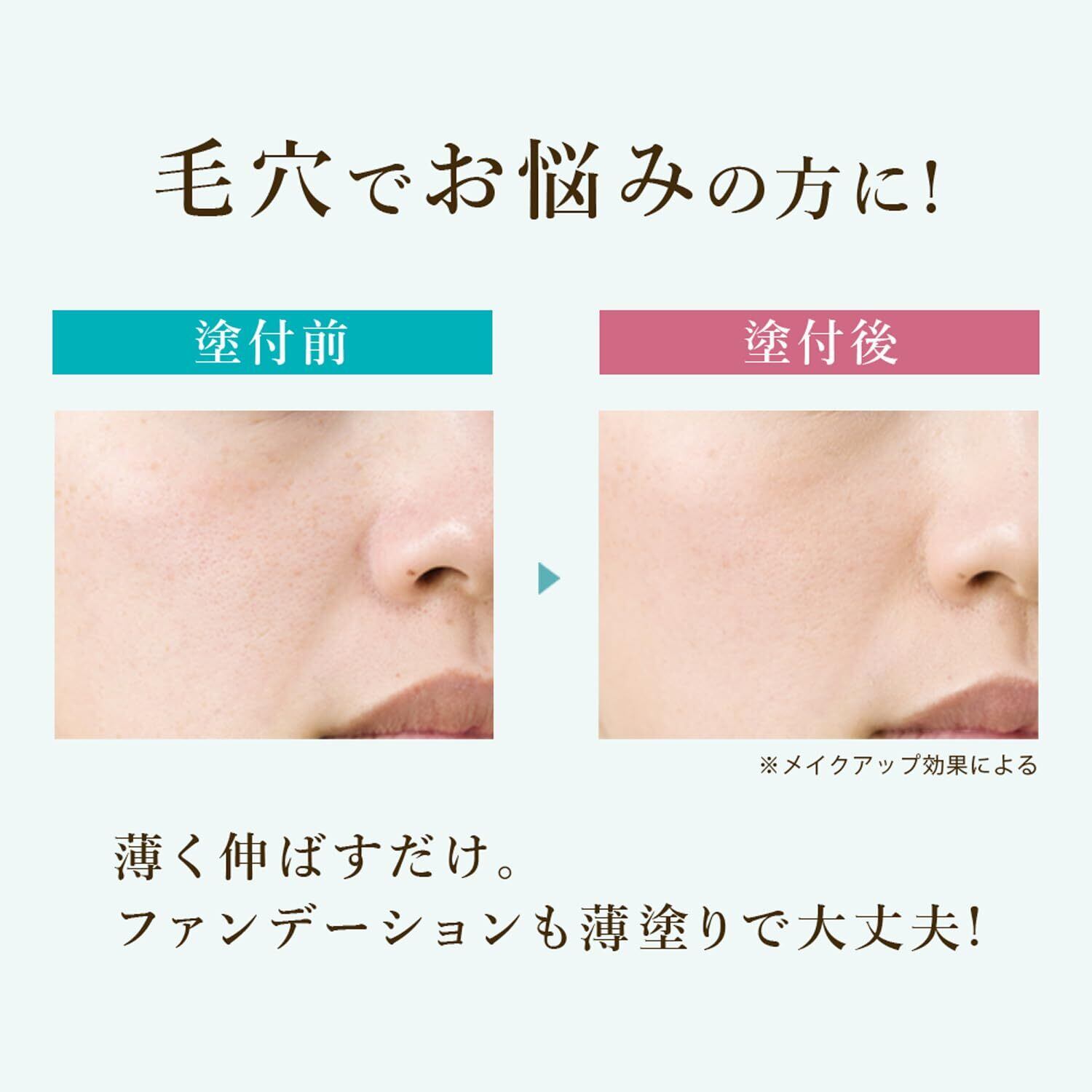 【 スムーススキンカバーが選ばれる理由 ① 】 肌トラブルや年齢により開いた毛穴に入り込み、肌をフラットに整える化粧下地です。 微粒子成分が肌の凸凹に密着し、ナチュラルにカバーし、まるで本当の自分のようなすっぴん風透明肌を体感頂けます。