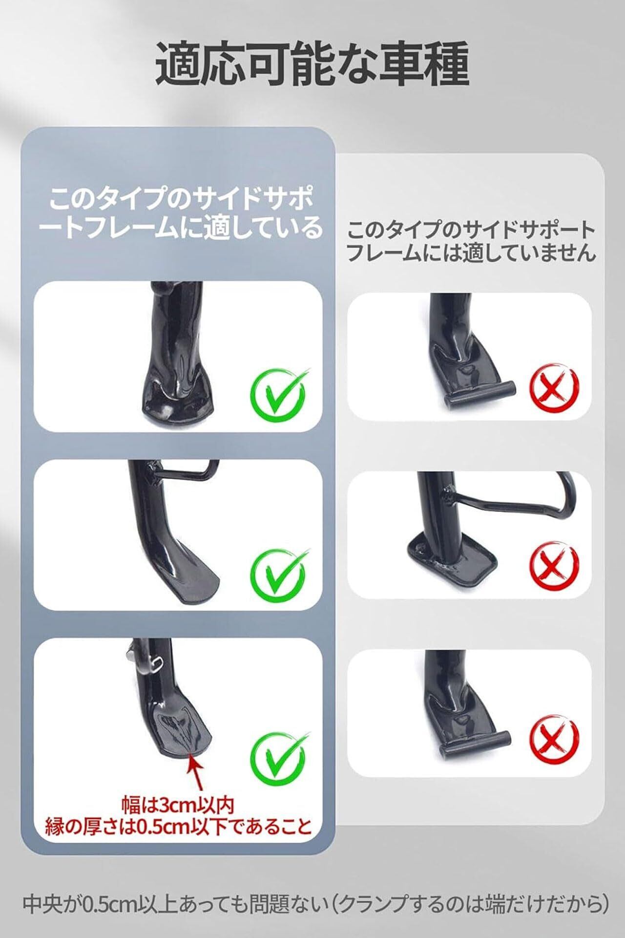 【機能】この大きな足のサポートエクステンションパッド、柔らかい地面、泥の縁、砂、柔らかいアスファルト、不均一な表面でも、自転車は常に安全な足場を持ち、転倒と沈みを防ぐことを心配しません。 オートバイの外観を強化し、拡大器がサイドスタンドフットの面積を増加させて、コストのかかるチップオーバーを防ぐのに役立ちます。