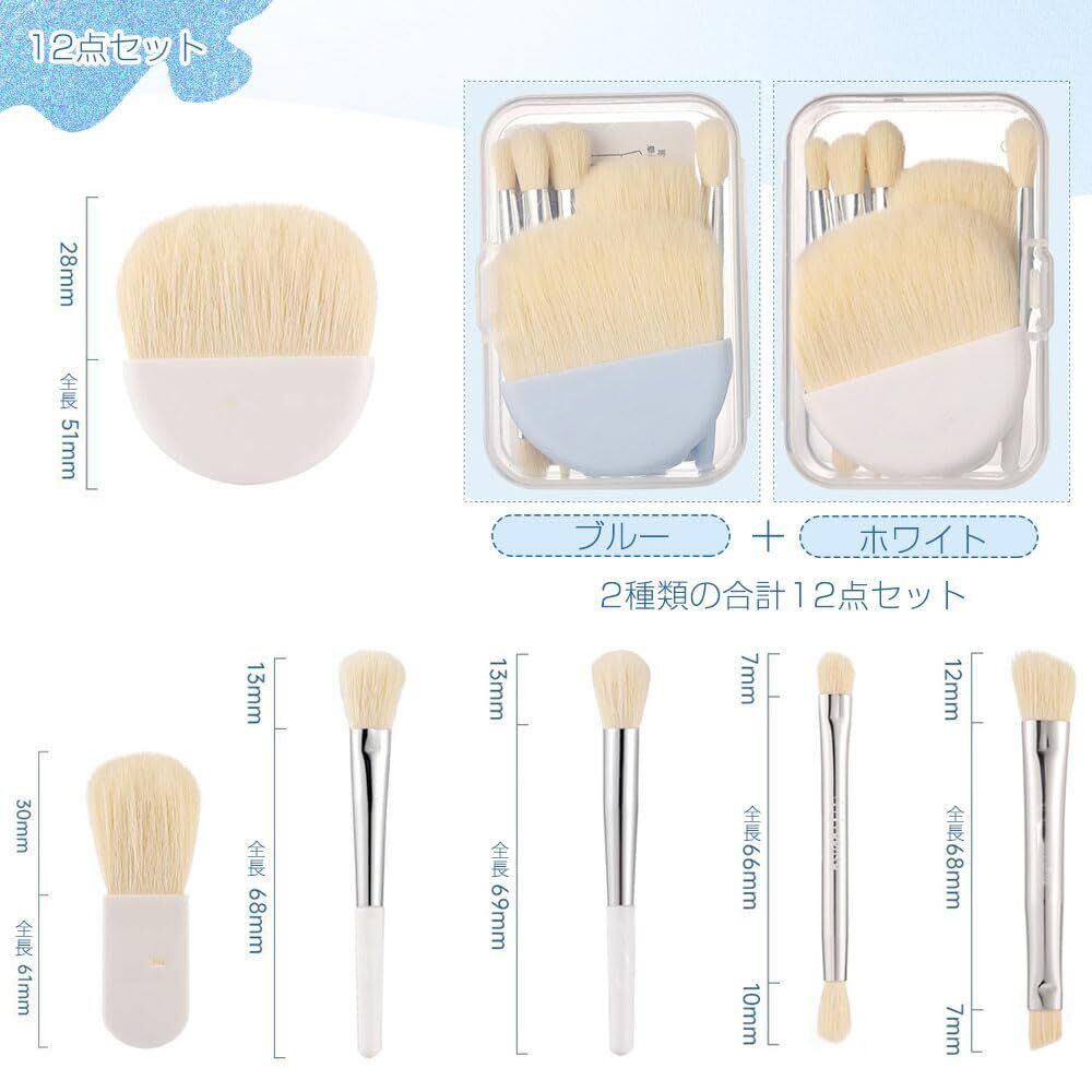 メイクブラシ ミニ 化粧筆 携帯用 12本セット アイシャドウ パウダーブラシ 柔らかい 化粧ブラシセット 持ち運び便利 多機能 日常の化粧 宴会 通勤 旅行最適 防塵 収納ケース付き(ホワイト+ブルー)