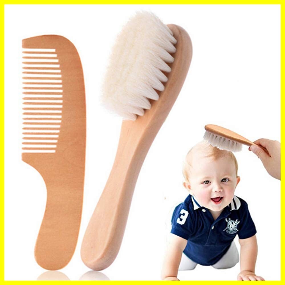 Kingsie ベビー ヘアブラシ コーム 2点セット 天然木 山羊毛 ブラシ くし 新生児 赤ちゃん ヘアケア 出産祝い ギフト