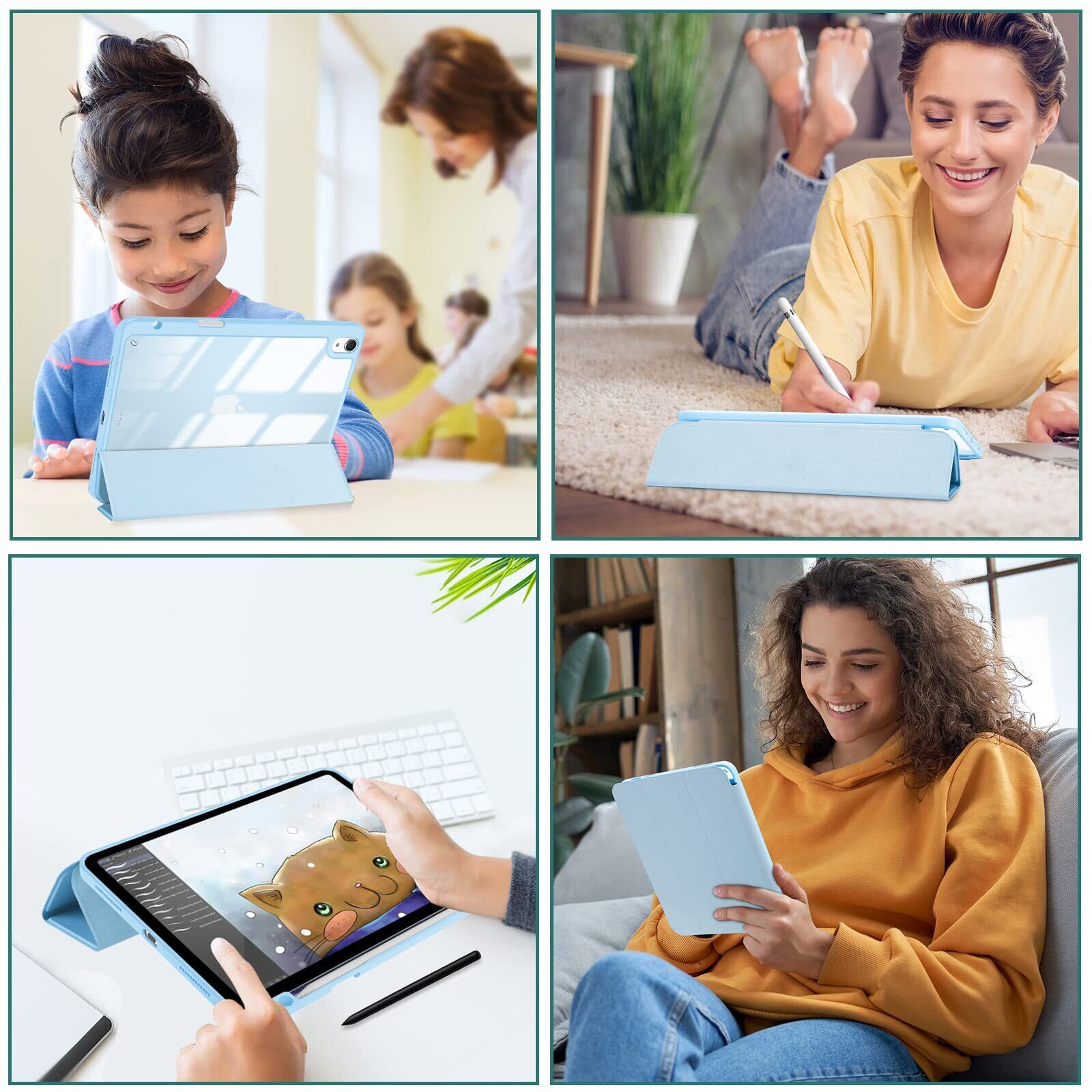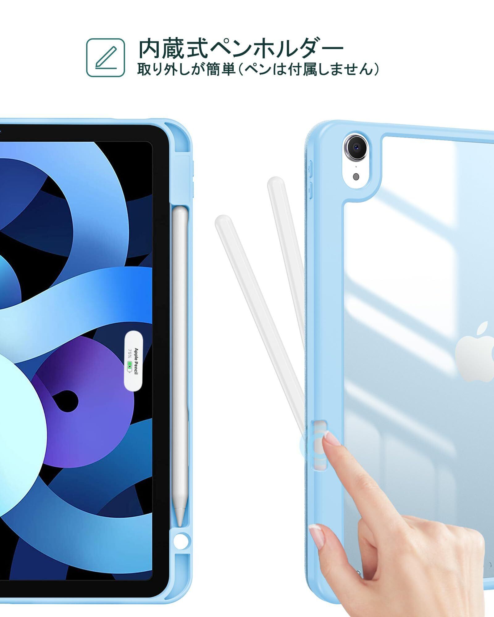 ProCase iPad Air 11インチ ケース M3 (2025) / M2 (2024) / iPad Air5 (2022) / Air4 (2020) 10.9インチ 透明 クリアカバー ペン収納 耐衝撃 三つ折り スタンド スマートカバー (スカイブルー)