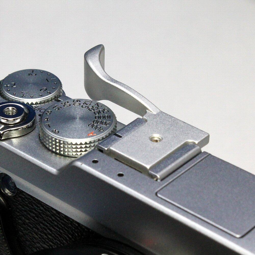 ホットシューに取り付けるタイプの各社対応 サムレスト。アルミ合金製 シルバー