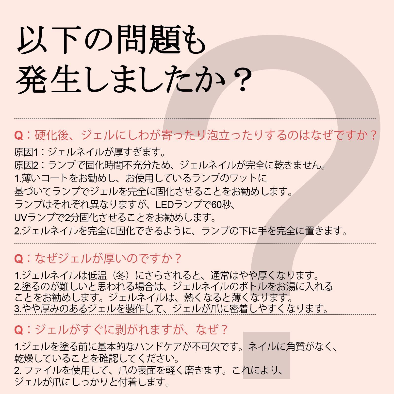 【使用のヒント】本品はシアーカラージェルで、すばやく軽く塗ると、色がより均一になります。 最も重要なことは、色の深さは爪のベースカラーと適用されるレイヤーの数によって異なります。レイヤーが少ないほど透明感が増し、レイヤーが多いほど鮮やかになります。