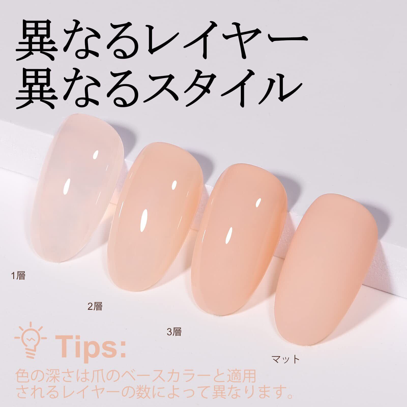 【ゼリースタイルのジェルネイル】オパールゼリーな質感にこだわったネイルジェル、透明感たっぷり。さりげなく洗練された透明感のあるヌードスタイル。日常生活、仕事、デートに使えます。 フレンチネイルを作成するベースカラーとしても使用できます。単色として使用だけでなく、ブルーミング、ホログラム、押し花などのりやデザインにも適用。