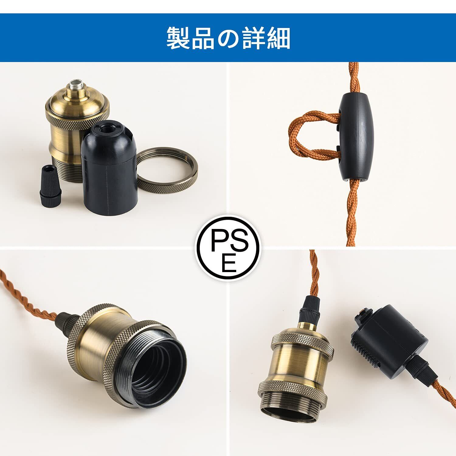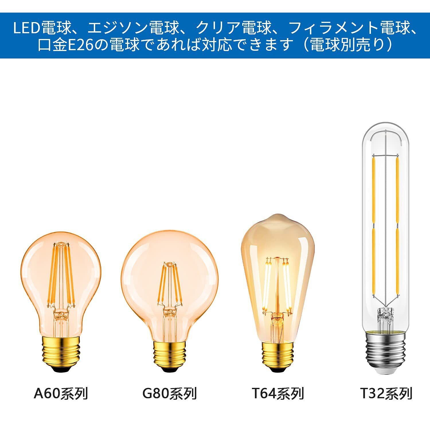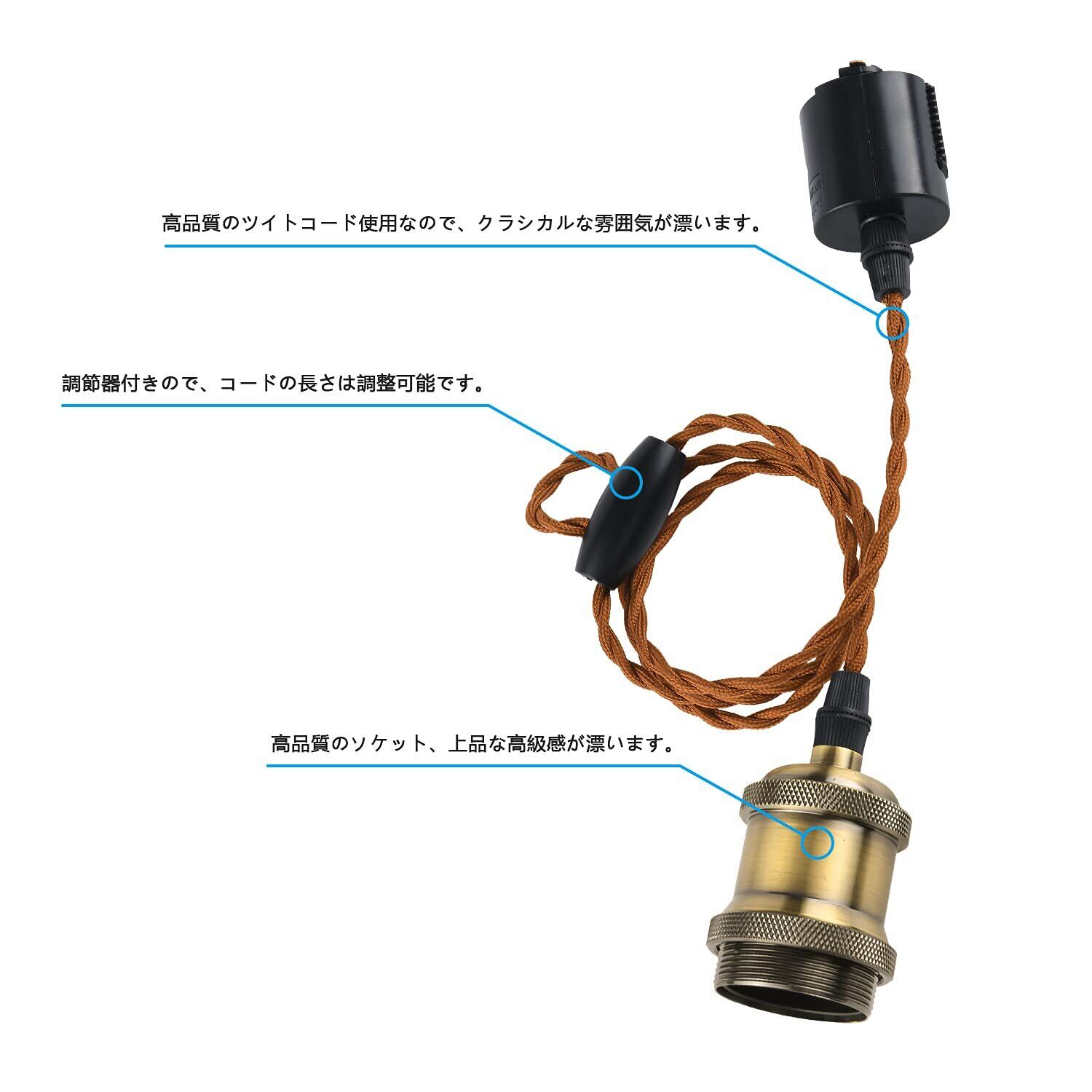 【長さが調整可能】コード長さが100cm、調節器付きので、コードの長さは自由に調整可能です、様々な用途に合わせて長さを変えてみてください。LED電球、エジソン電球、クリア電球、フィラメント電球など口金E26の電球と組み合わせます。