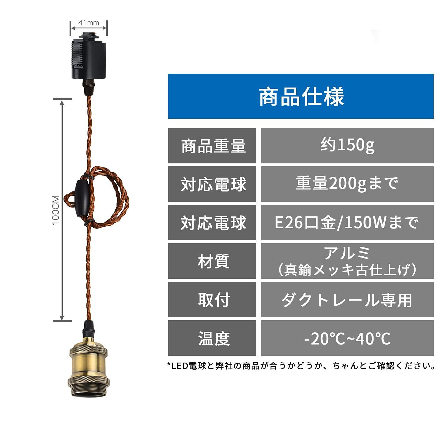 【商品情報】注意:電球は付属しておりません。 ◉口金:E26 ◉コード長さ:100cm調節可能 ◉重量:約150g ◉使用可能電球:口金E26 150Wまで(重量200gまで) ◉材質:プラスチック、アルミニウム ◉パッケージ:2個セット