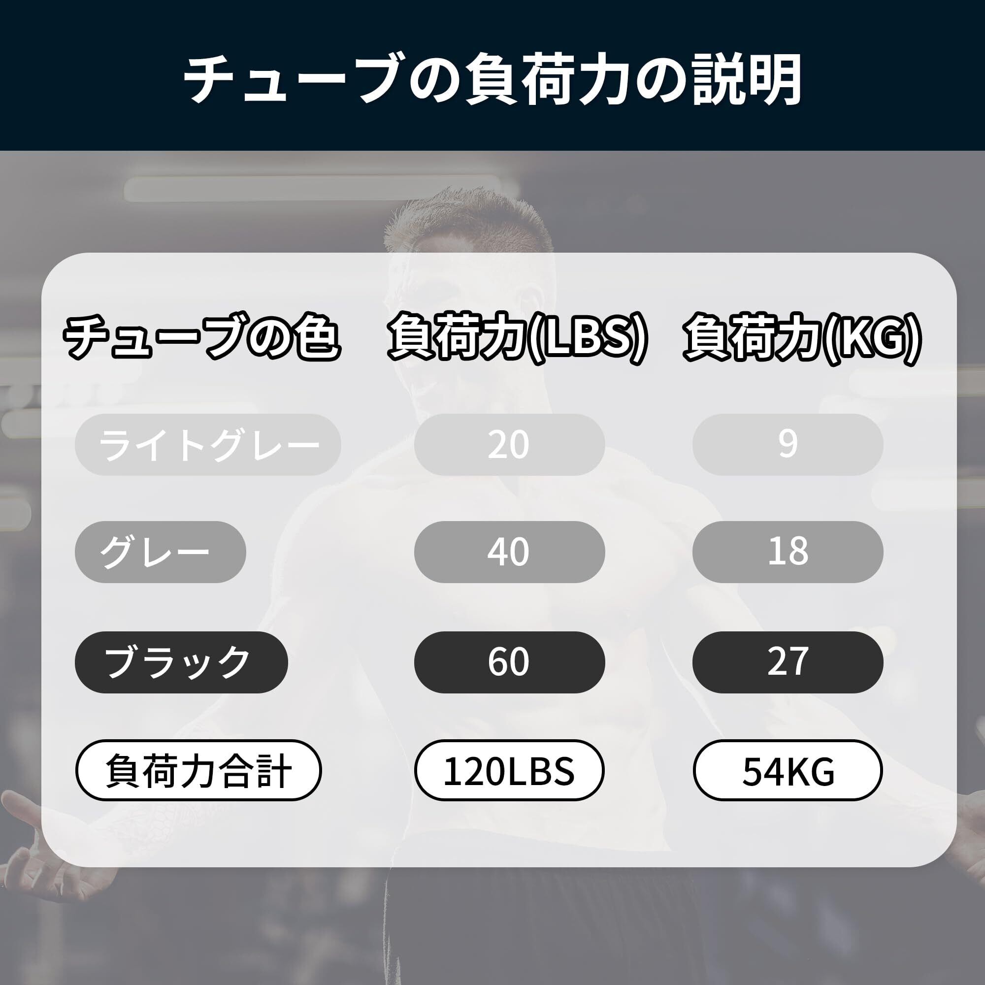 【54kgまでの負荷調整】:ライトグレー、グレー、ブラック三色セットのトレーニングチューブです。布製のトレーニングチューブですので、伸縮性を持ちながらお肌にやさしいです。ゴム臭いはなく、特にトレーニング途中で手のひらを傷つけることもありません。トレーニングチューブ3本を同時に使いますと、最高レベル54kgまでの負荷力に達します。