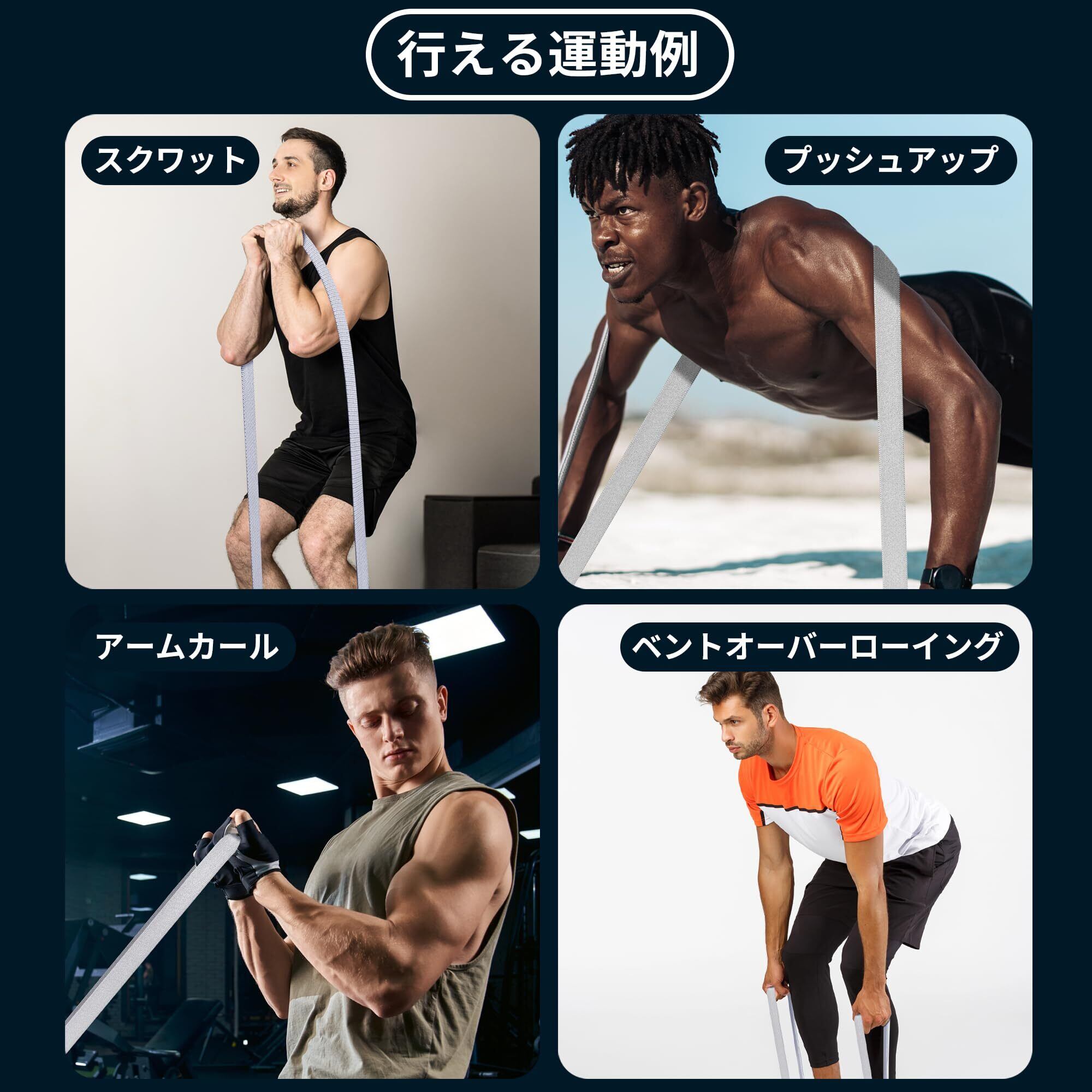 【マルチ機能 / 安全性】:この商品は布の伸縮性を利用して運動プログラムのバリエーションが様々です。要するに、重いトレーニングマシンを使う時にケガしやすいと比べれば、トレーニングチューブを使うことはもっと安全です。三種類の負荷力を利用して大きい筋肉から小さい筋肉まで鍛えられますので、初心者からアスリートまでご使用いただけます。