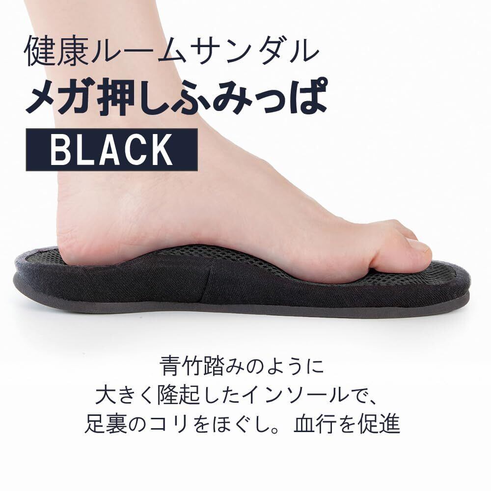 アルファックス 健康スリッパ 足つぼ メガ押しふみっぱ グイグイタイプ ブラック Mサイズ 23.0-25.0cm