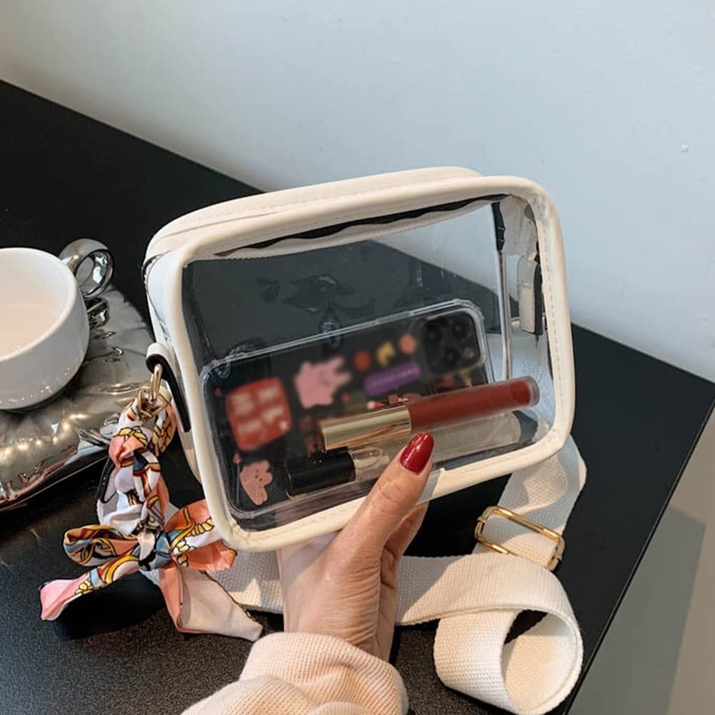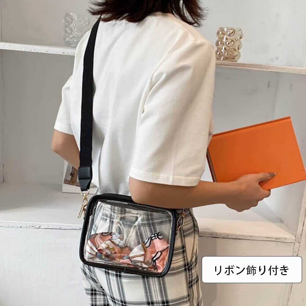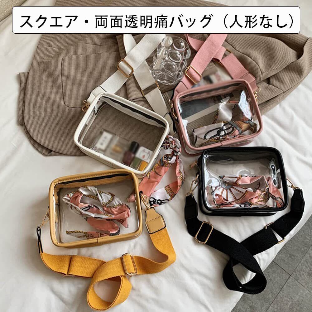 [YUYAKESHI] 痛バ 見せバッグ ショルダーバッグ イベント 10-15cmぬいぐるみ用 外出 両面透明 スクエア バッグ PU製 クリアバッグ リボン飾り