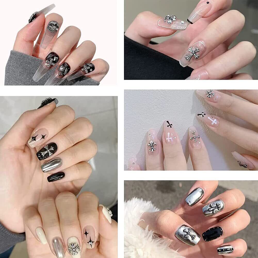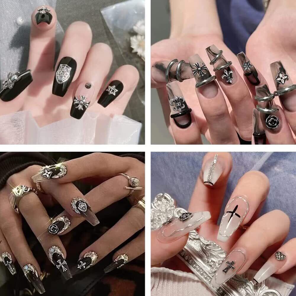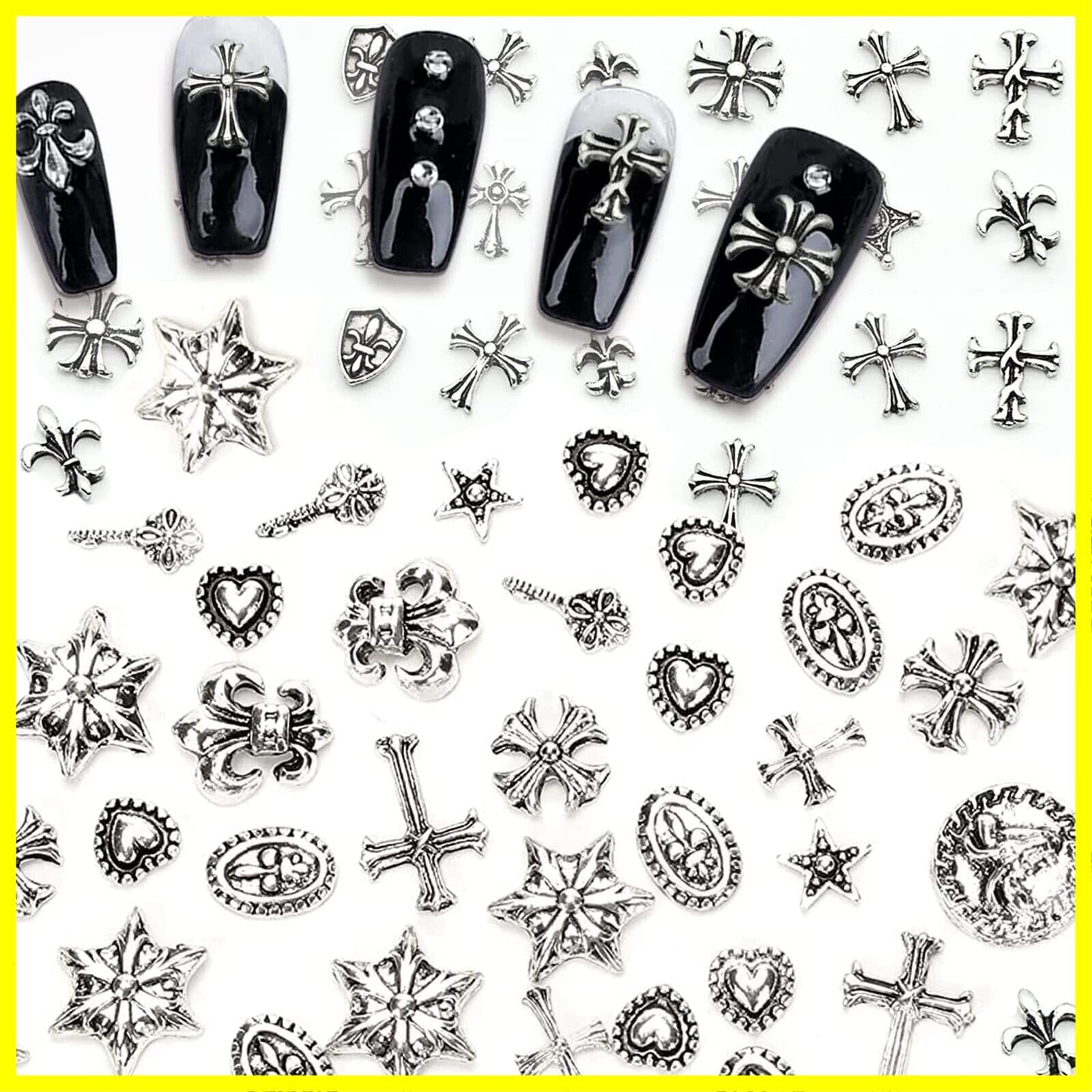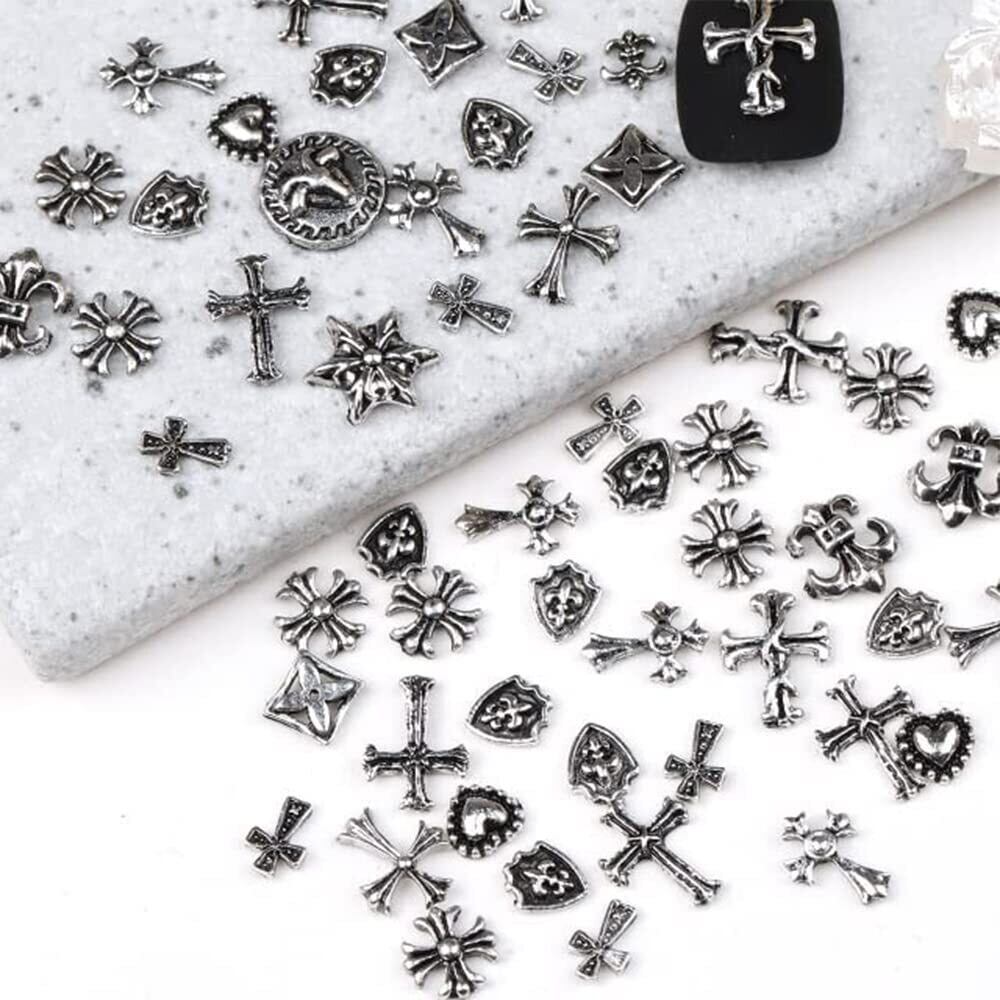 LIKENNY ネイルパーツ パンク風 メタルパーツ レトロ シルバー ネイルアート用品 DIY クラフトアクセサリー 金属パーツ 3D立体感 ネイルパーツ (50個)