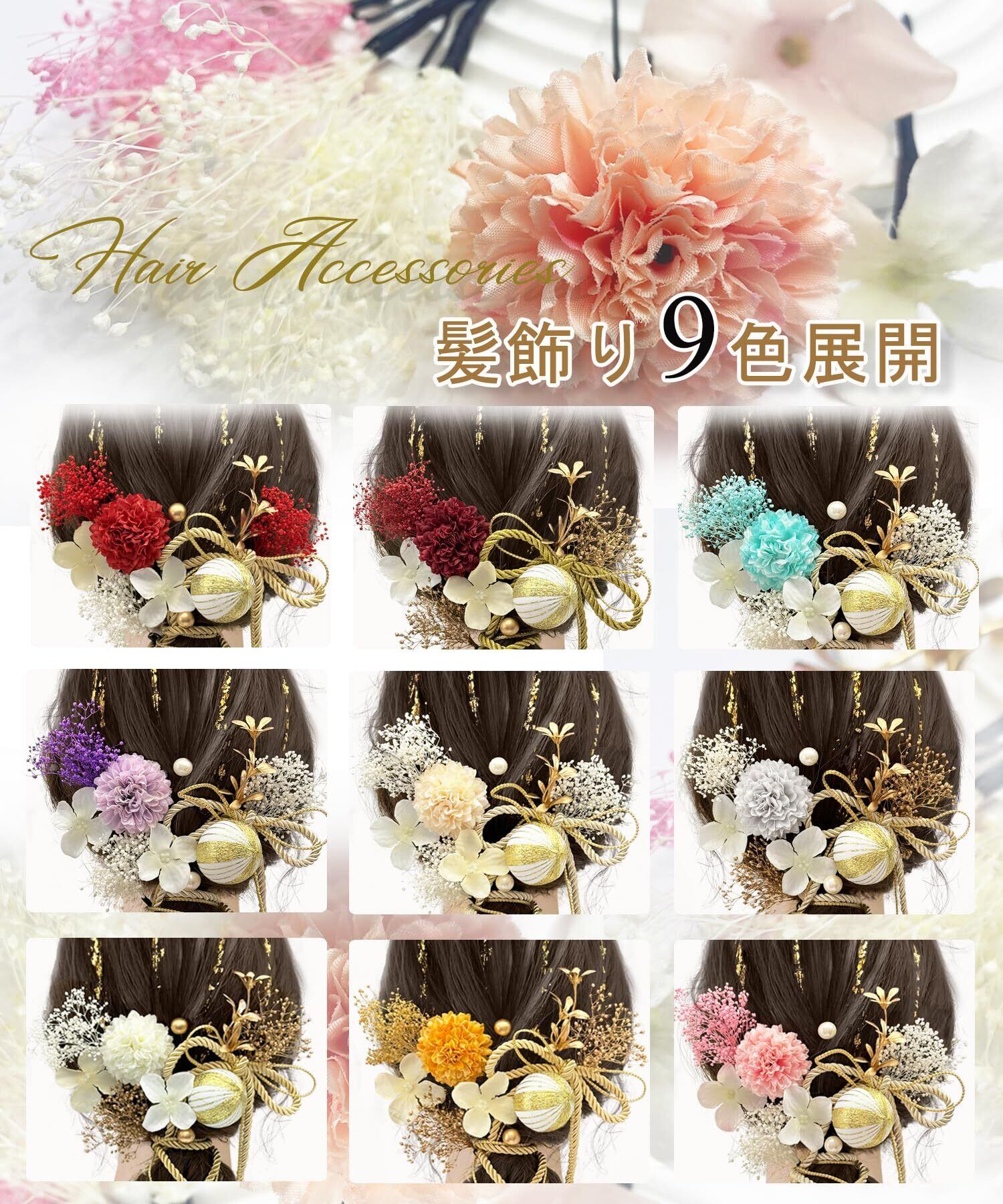 [JZOON] 髪飾り 成人式 9色展開 ドライフラワー 和装 振袖 着物 袴 浴衣用 卒業式 かすみ草 A1800