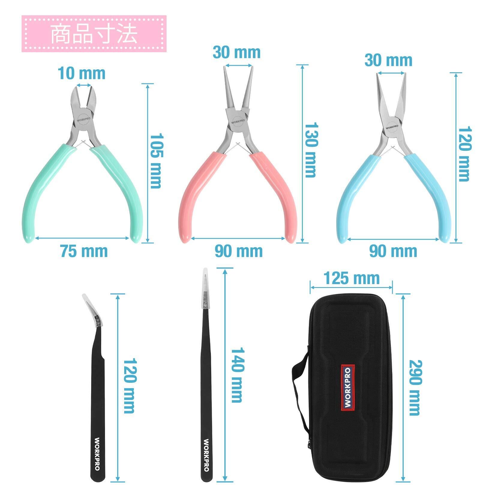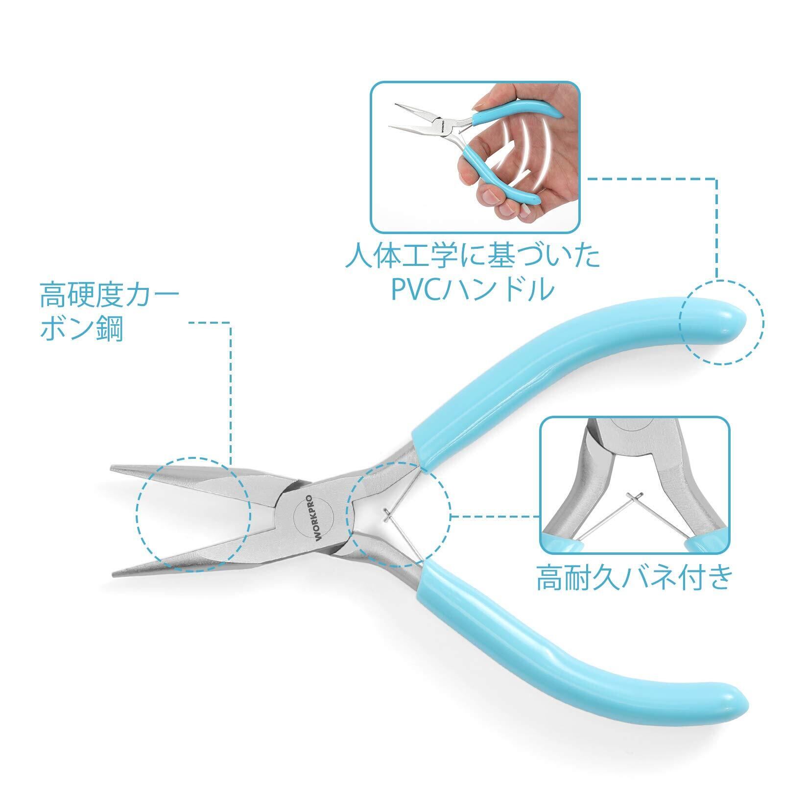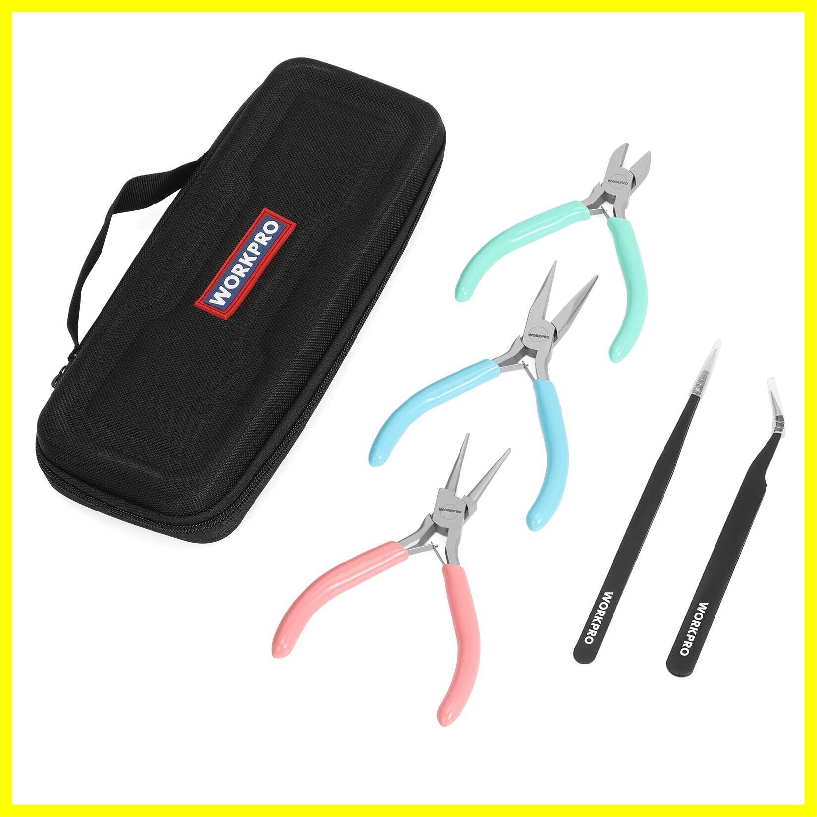 WORKPRO アクセサリー工具セット ペンチ 平やっとこ ニッパー 丸ペンチ ピンセット 手芸用 5本組 収納ケース付
