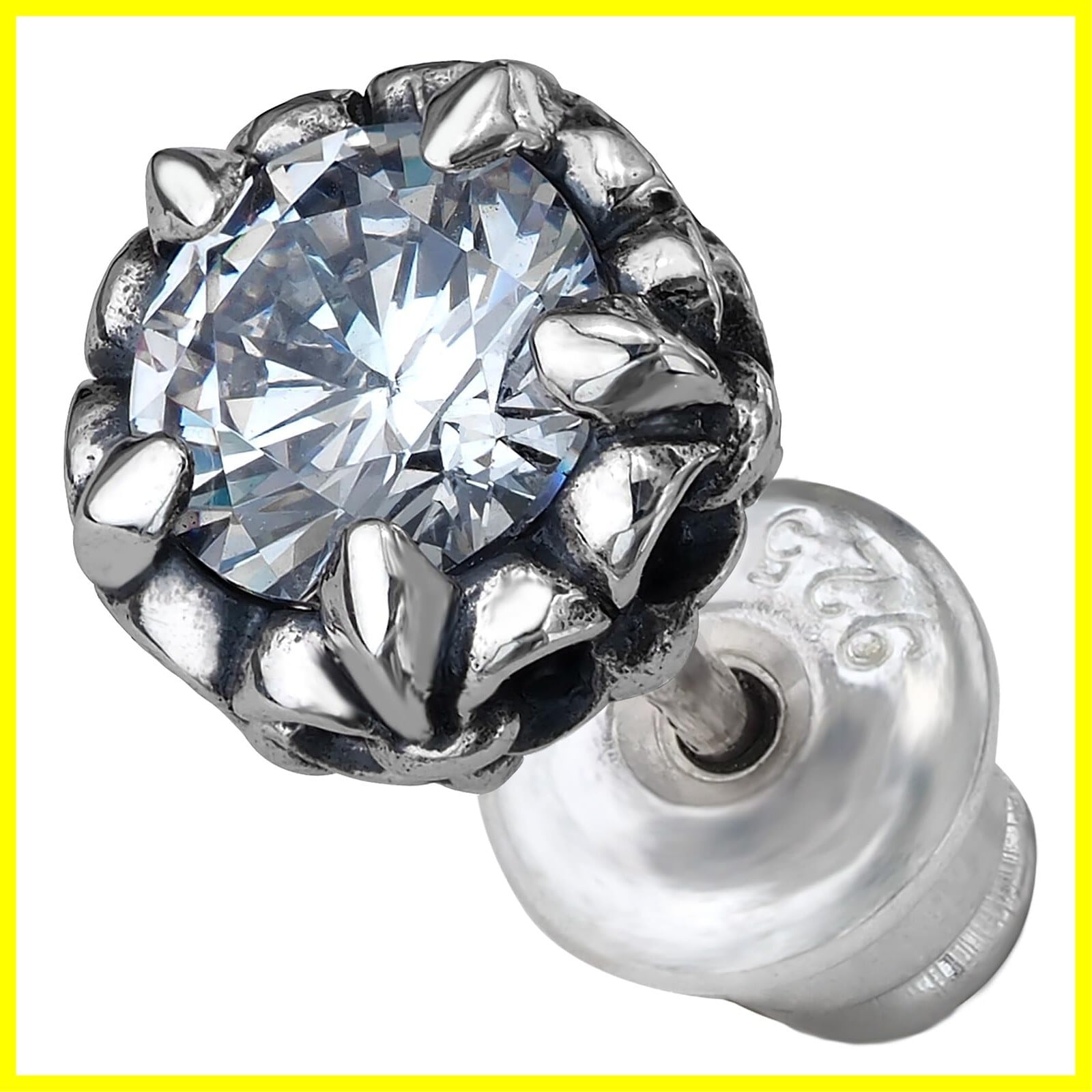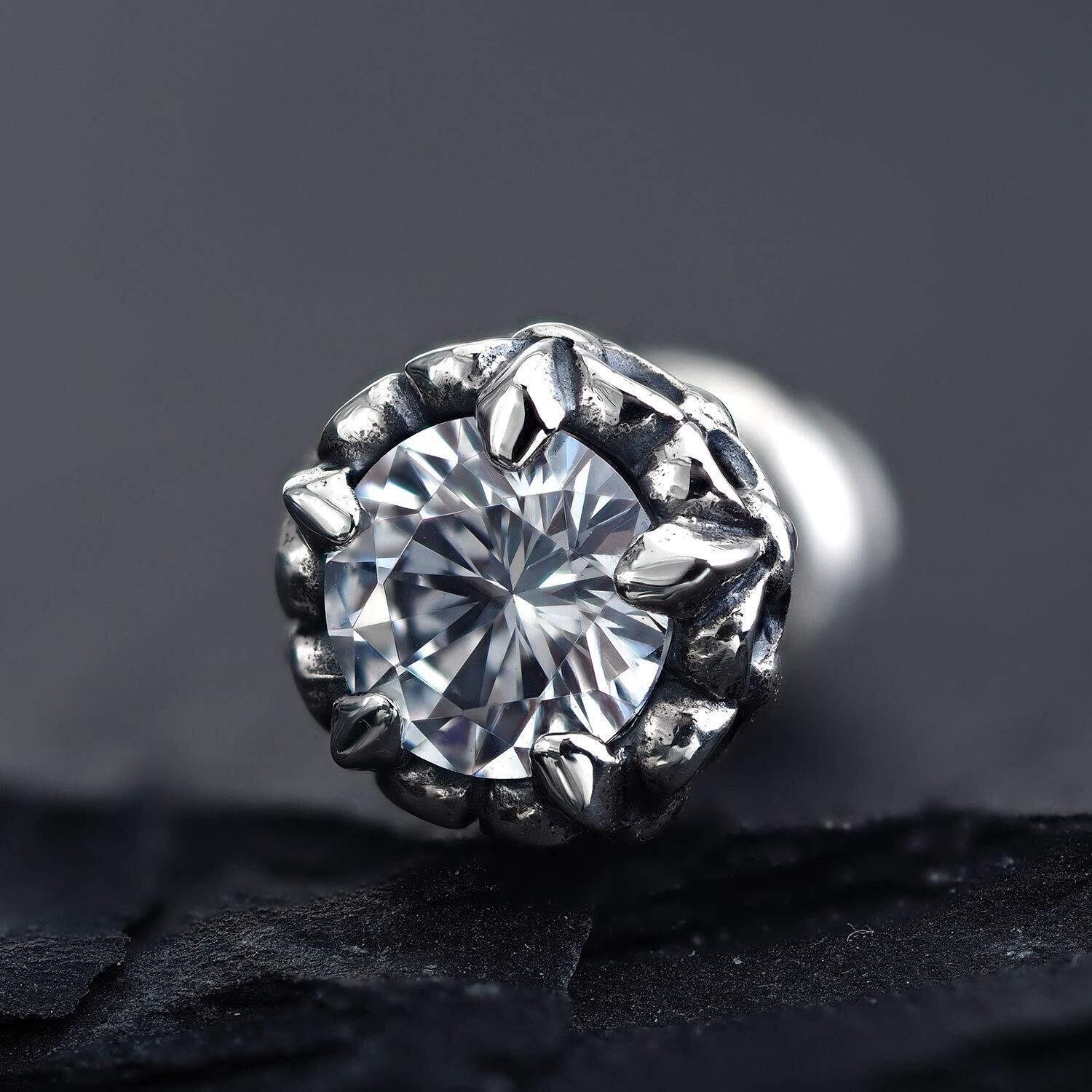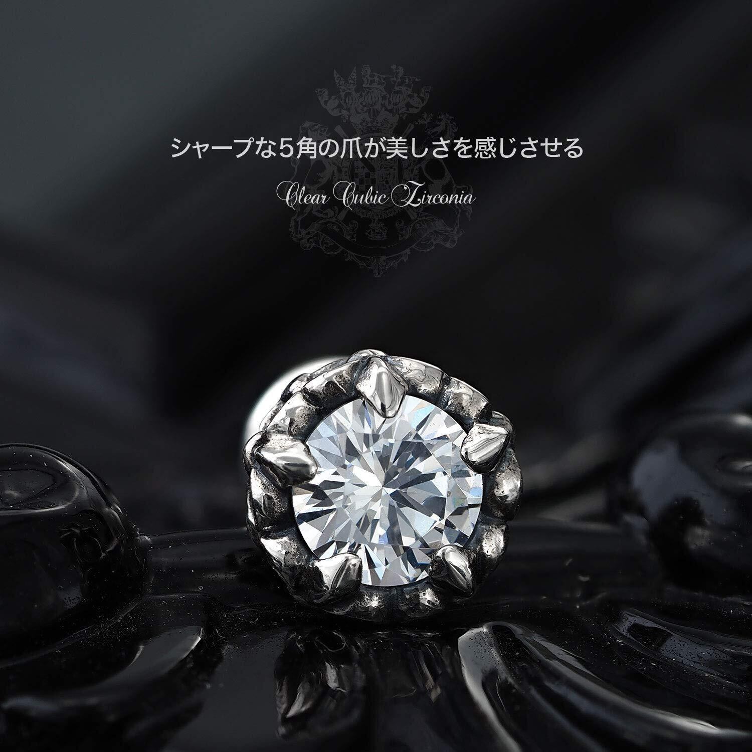 【完成されたデザイン!】シャープな5つの爪が5角の星のように輝くシルバーピアス(片耳用)です。本格的な作りこみで、シルバーの醍醐味の「銀の輝き」に「ストーンの輝き」がミックスされたクールな美しさを持つピアスです。