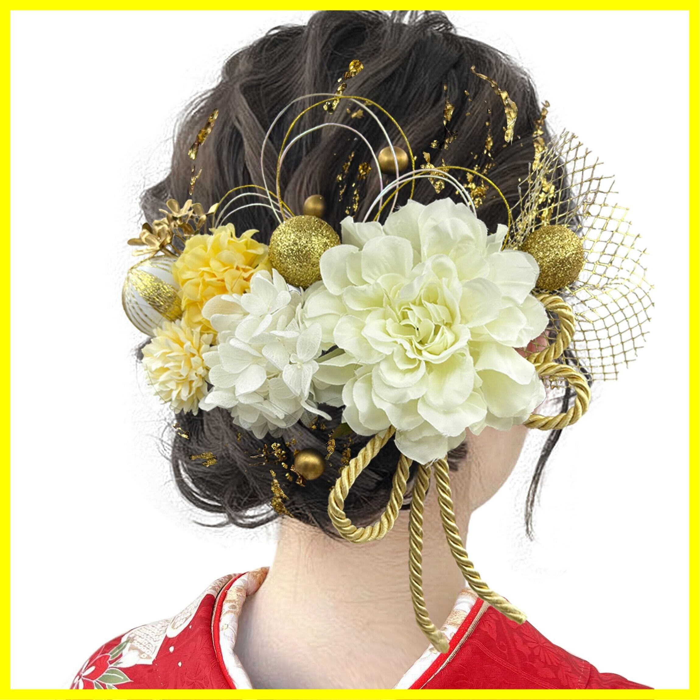 【様々なシーンで】各パーツがUピンまたはIピン仕様になっております。ご使用時に量を加減でき、色んなアレンジをお楽しみいただけます。 成人式や花火大会などの和服から結婚式やパーティーなどの洋服まで様々な場面で大活躍です。