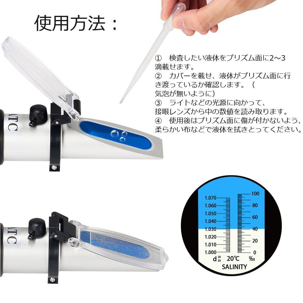 海水塩分濃度計Timvasion 温度自動補正 ATC 手持屈折計 海水比重計 海洋水族館の水槽塩分テスト